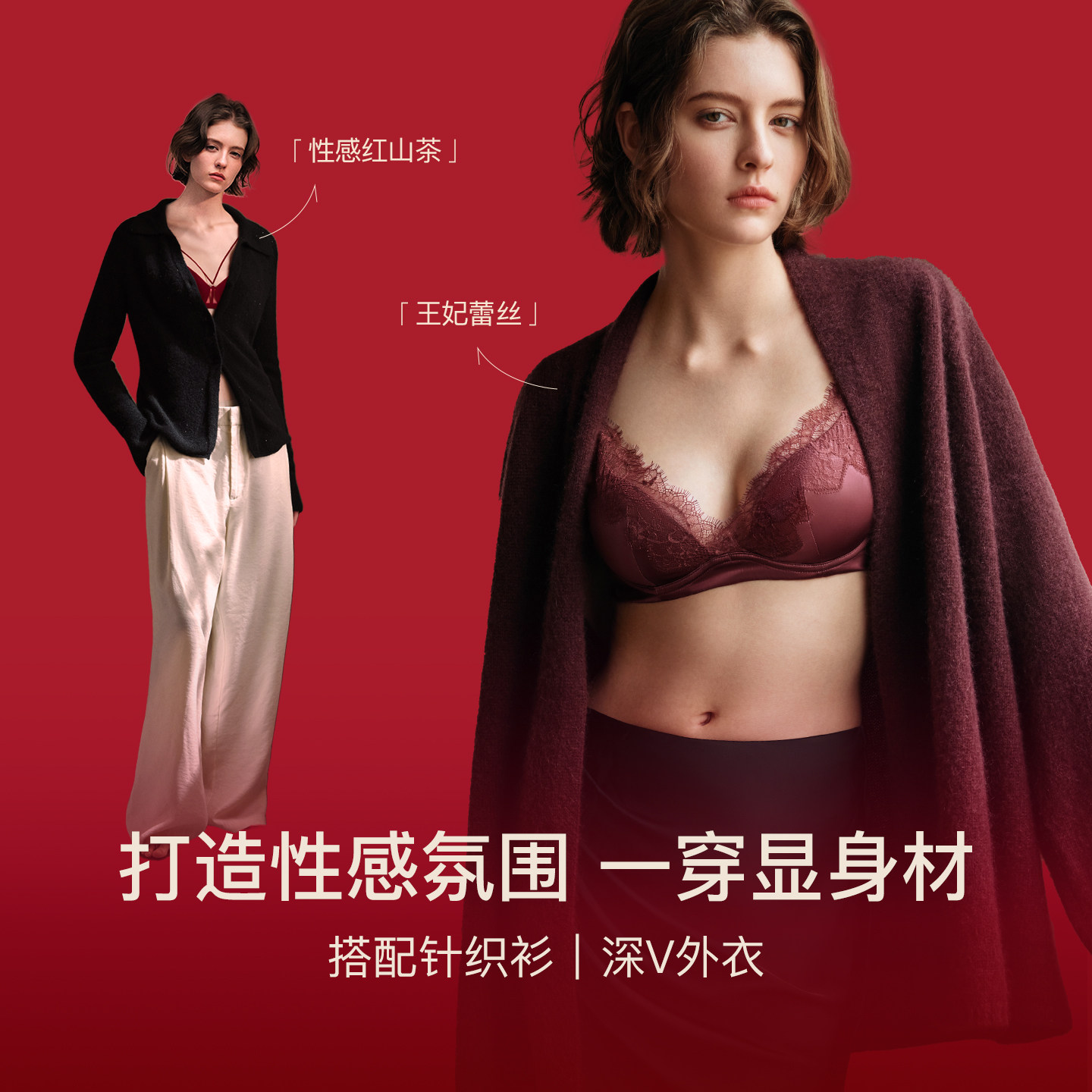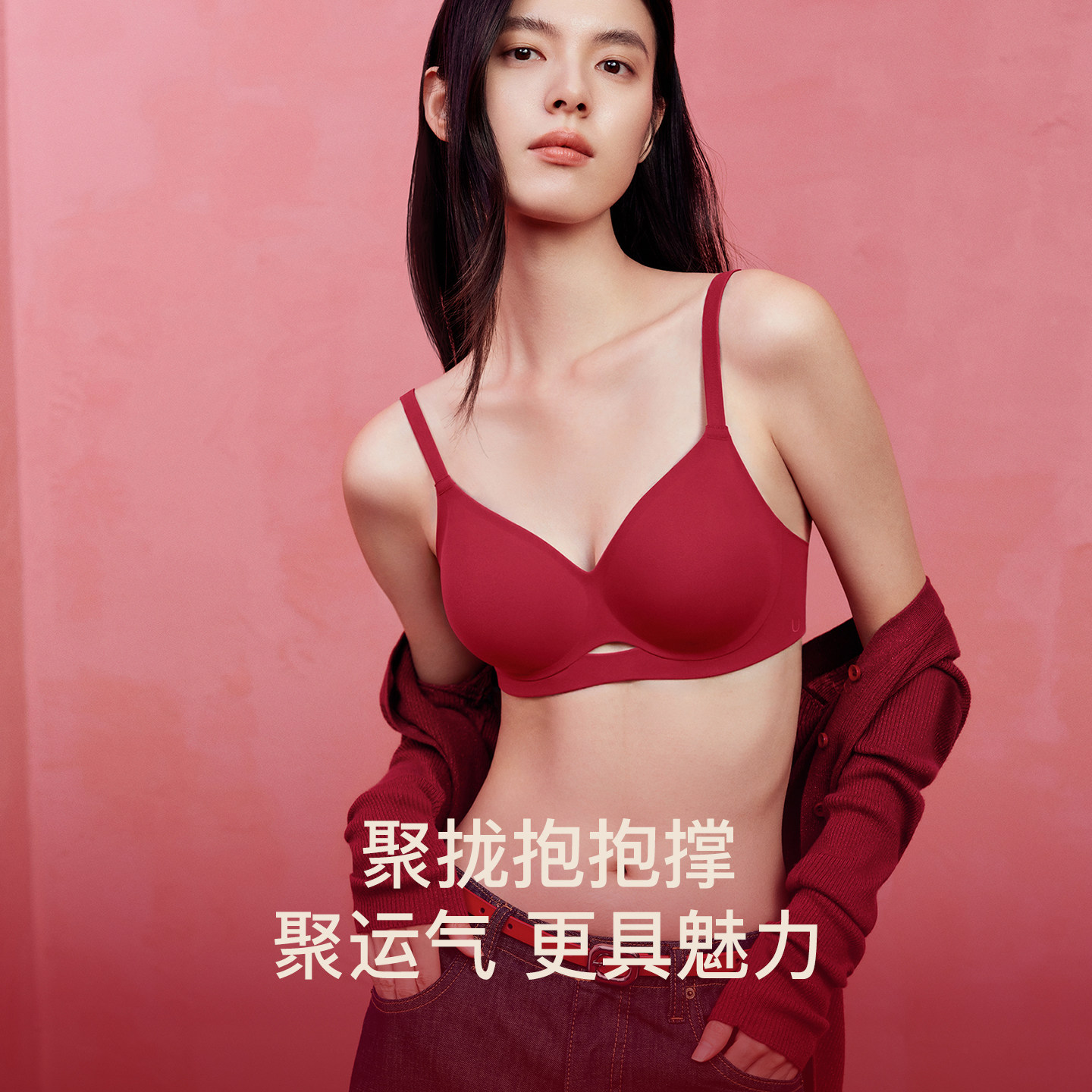 【宋轶同款 玫瑰舒挺杯】安莉芳小胸显大内衣本命年红无钢圈文胸