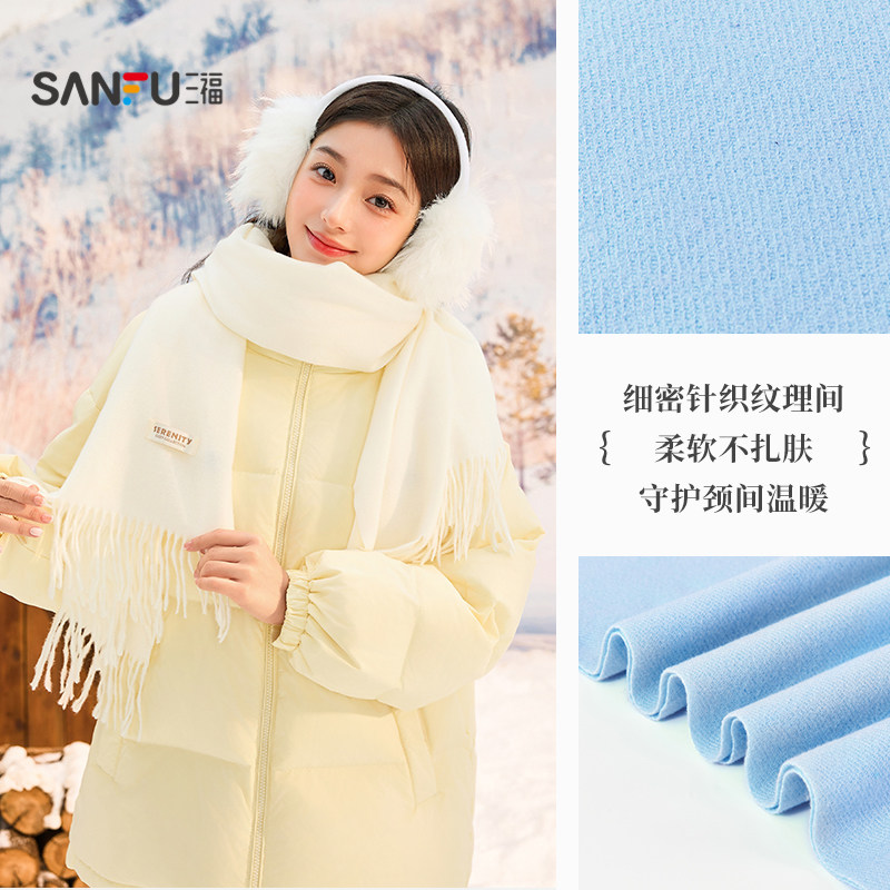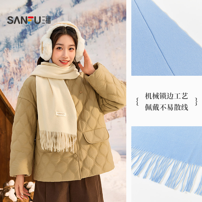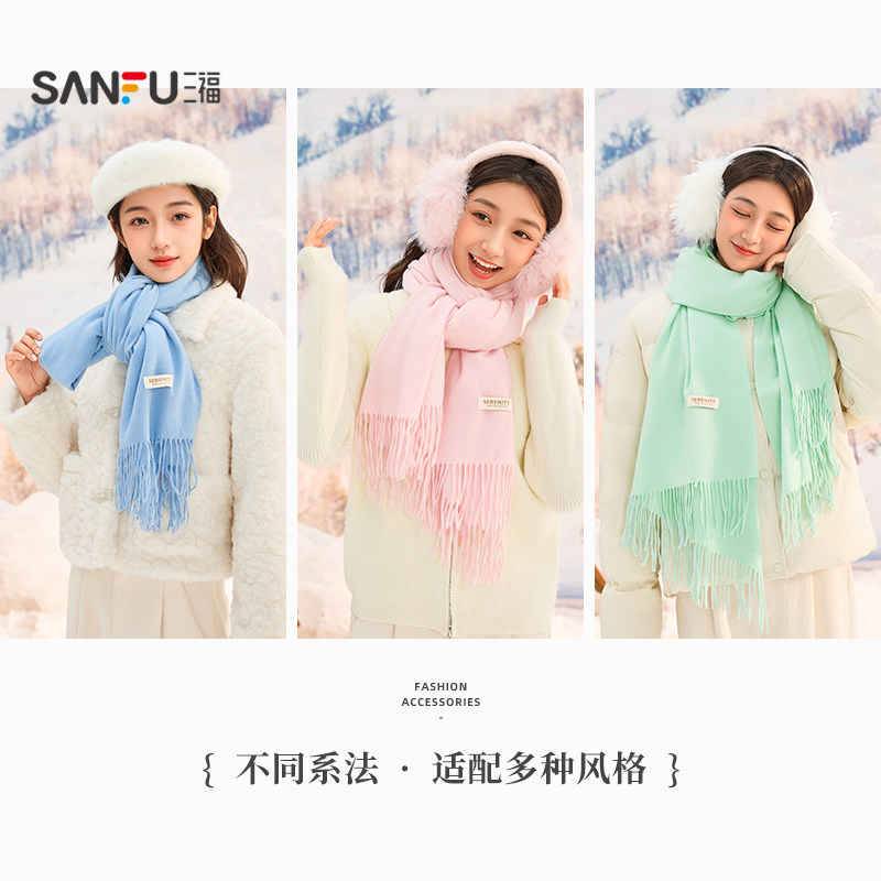 三福纯色围巾流苏韩系高级感蓝色加大旅游可披肩男女冬季2025新款
