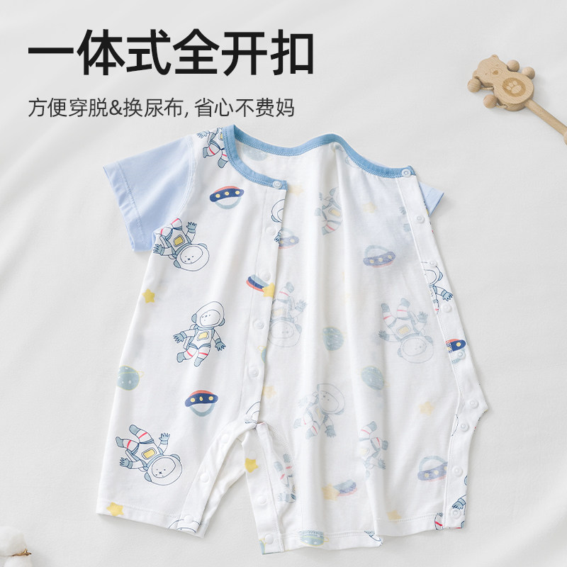 贝肽斯婴儿衣服夏季薄款男女宝宝短袖连体衣新生幼儿纯棉a类睡衣