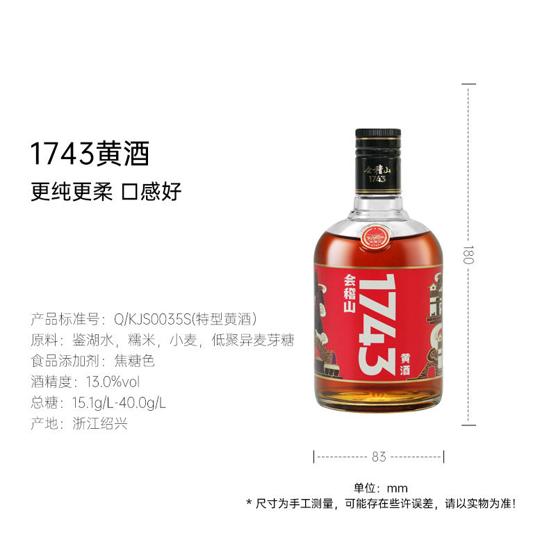 会稽山黄酒绍兴整箱1743半干型花雕酒500ml*6瓶装老酒糯米工艺