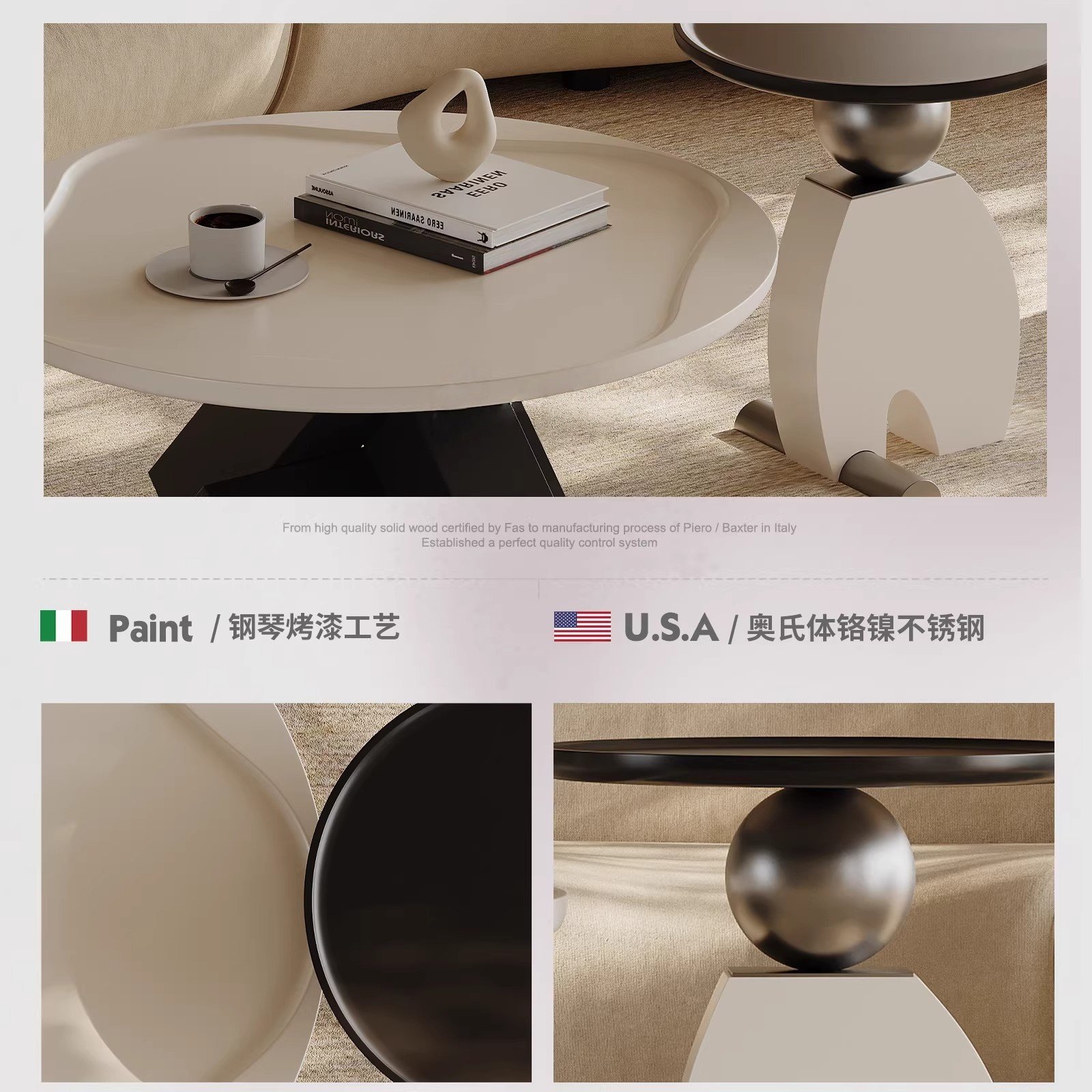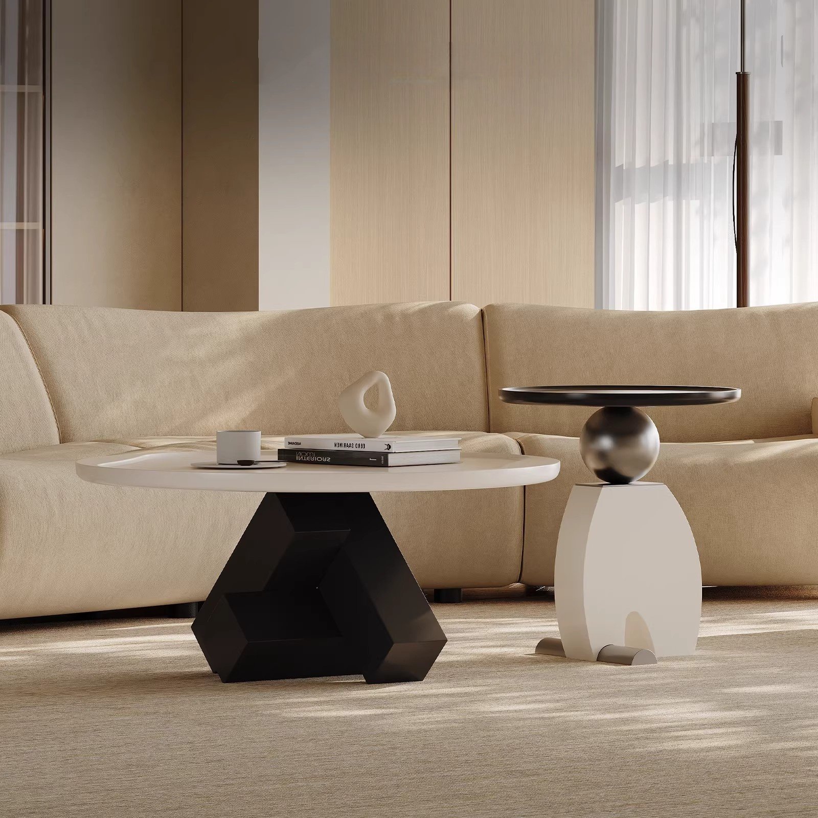 意式极简茶几组合圆形小户型艺术设计师客厅家用现代轻奢多巴胺