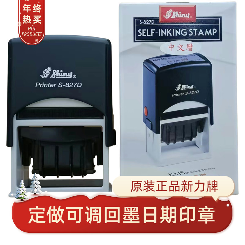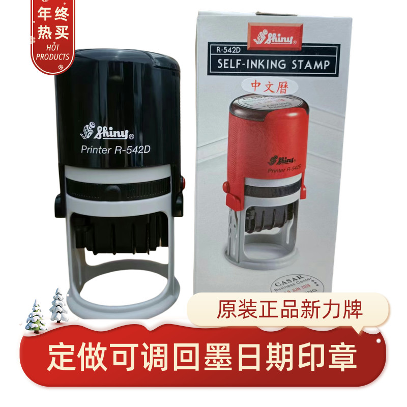 原装台湾新力牌自动按压式回墨翻转定做刻制中英文带可调日期印章
