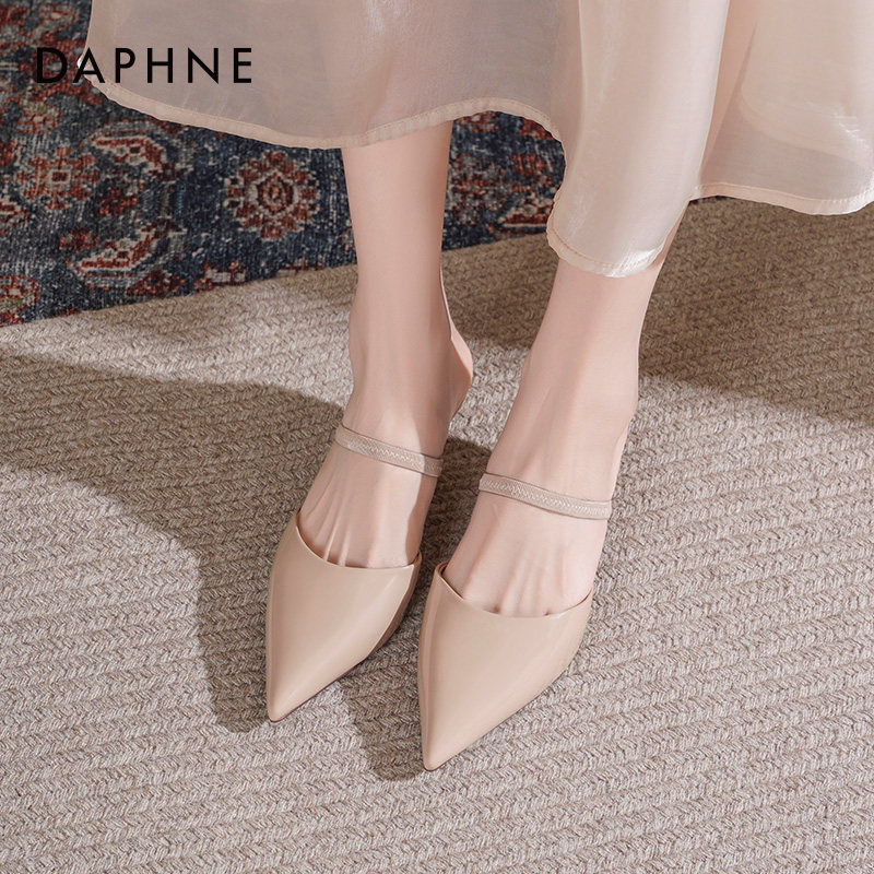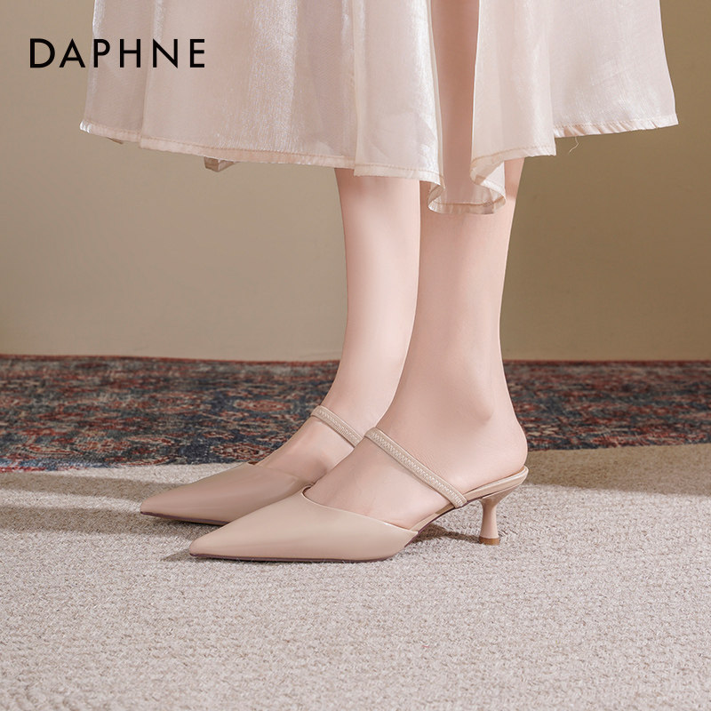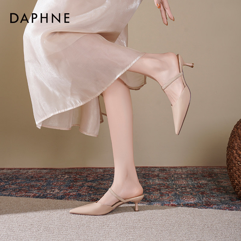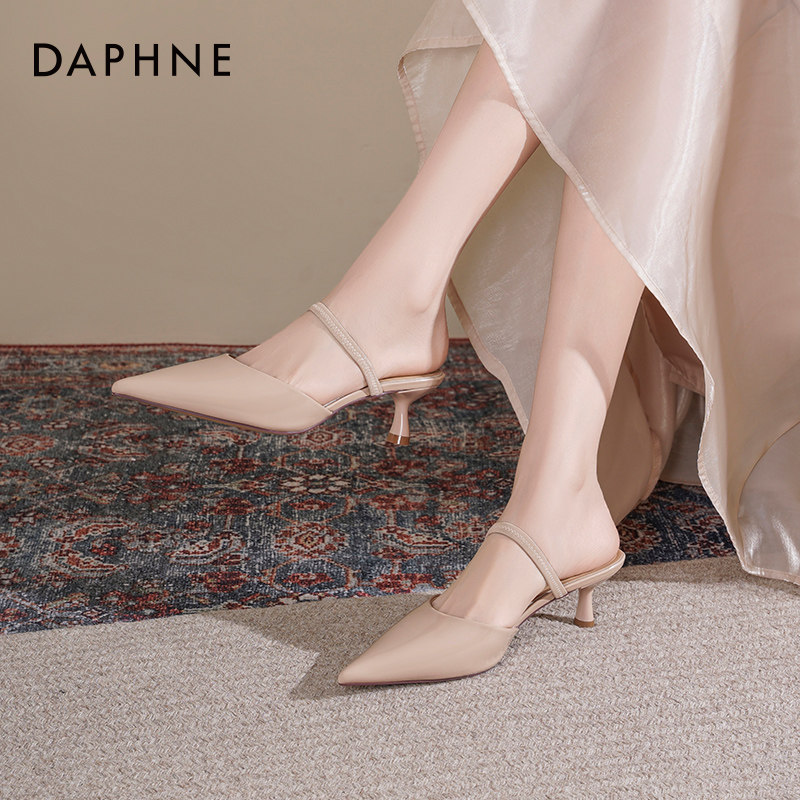 达芙妮高跟凉鞋女2026新款春夏外穿半拖鞋尖头裸色细跟高跟鞋女款