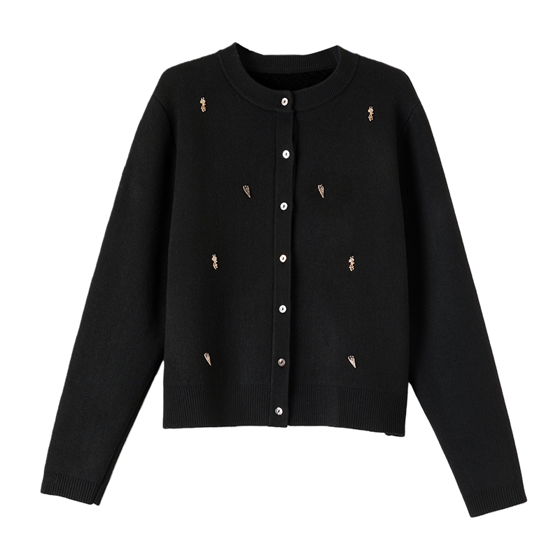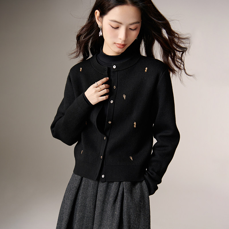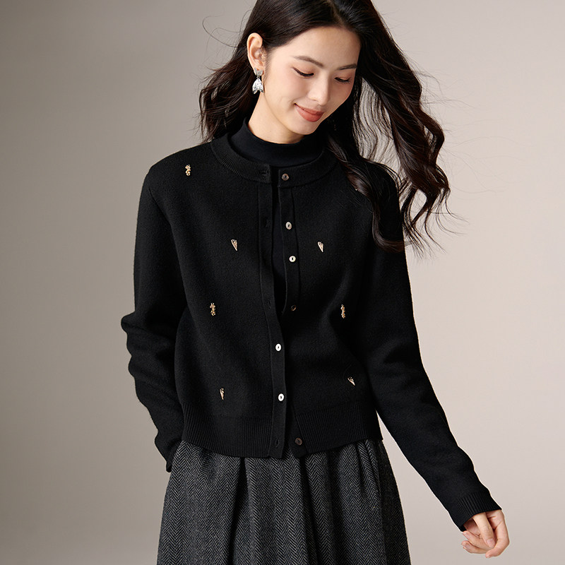 晚白2025年冬新款时尚简约加绒毛衣柔软舒适休闲百搭针织开衫女
