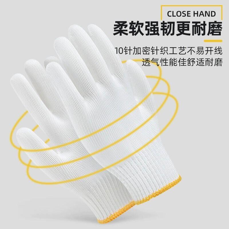 36双薄款白色尼龙PU涂指涂掌手套劳保耐磨防静电无尘透气浸胶防滑