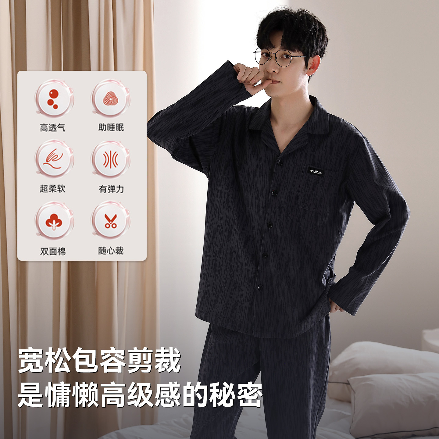 猫人2026新款男士纯棉睡衣春秋翻领透气亲肤长袖可外穿家居服套装