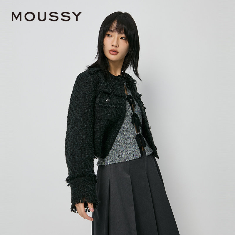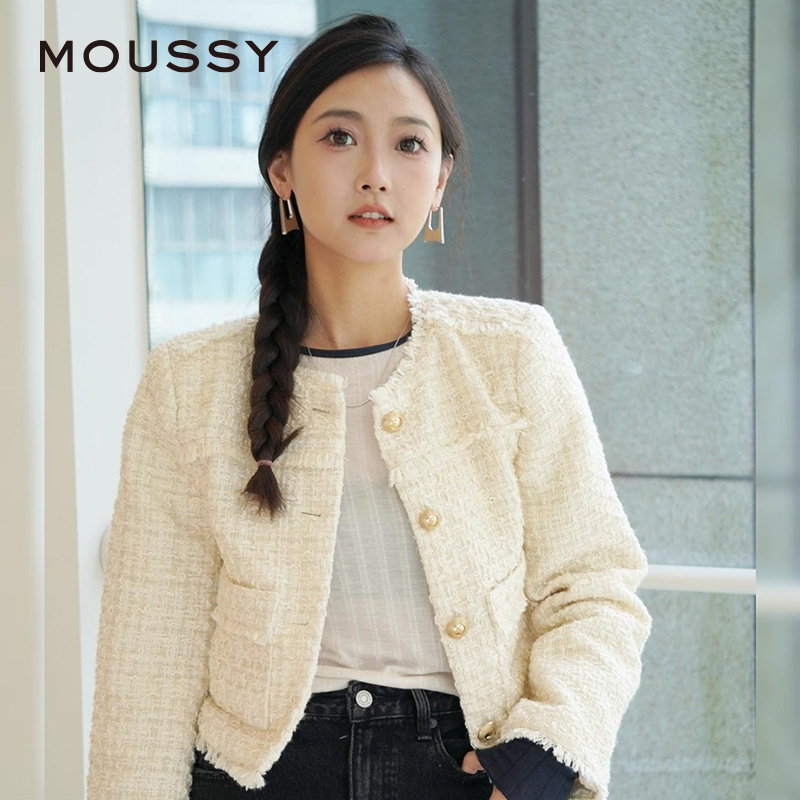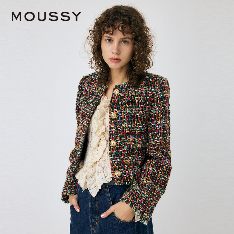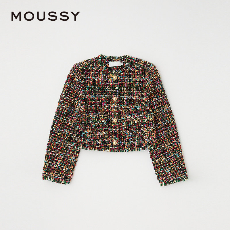 moussy 秋季彩色粗花呢幻彩气质小香风外套010HA730-0251