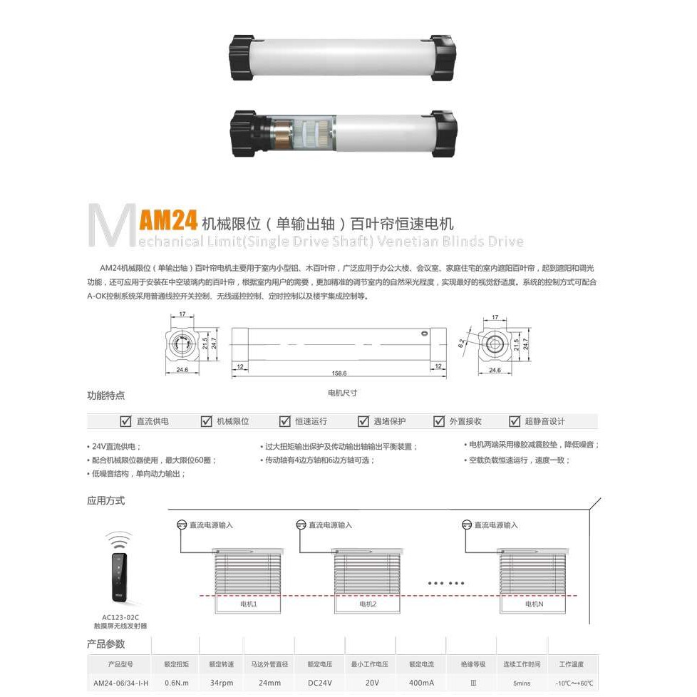 奥科百叶窗蜂巢帘百折帘AM24-06/34-MEL-I多点限位单输出轴电机