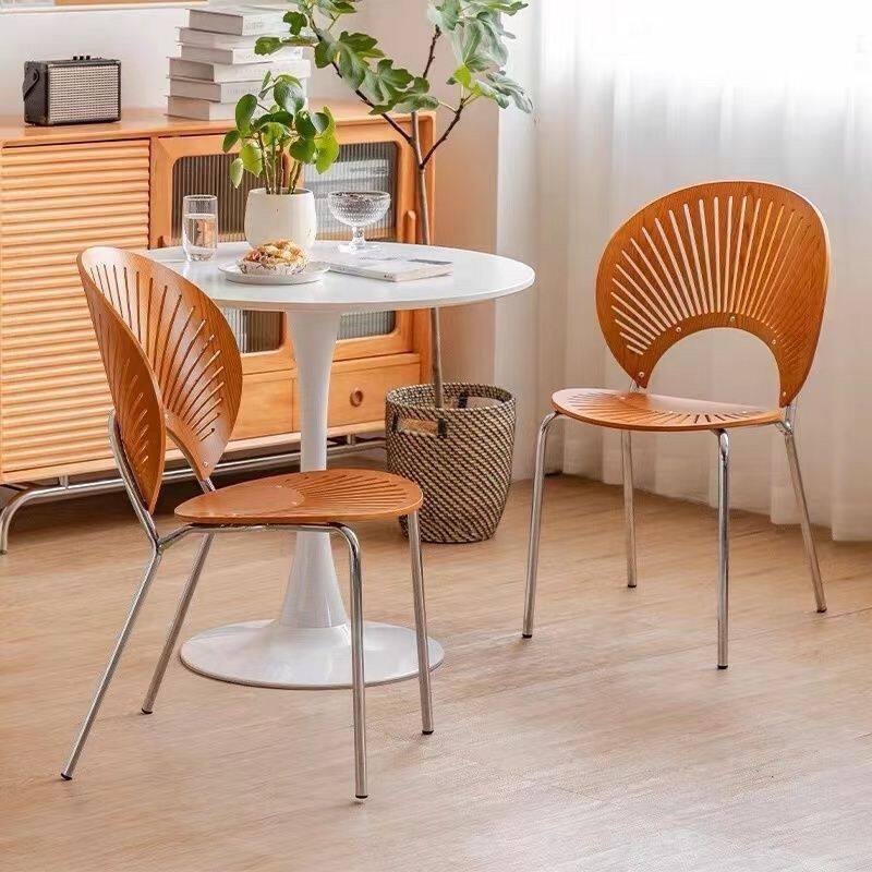 2025北欧实木餐椅轻奢贝壳椅家用轻奢甜品店奶油网红靠背复古椅子法式