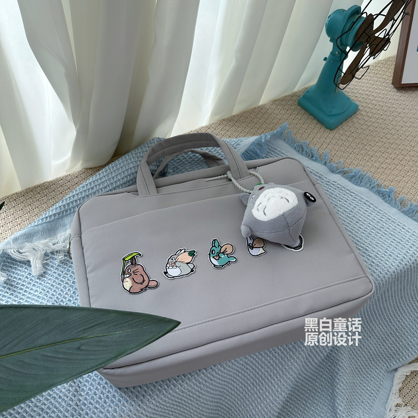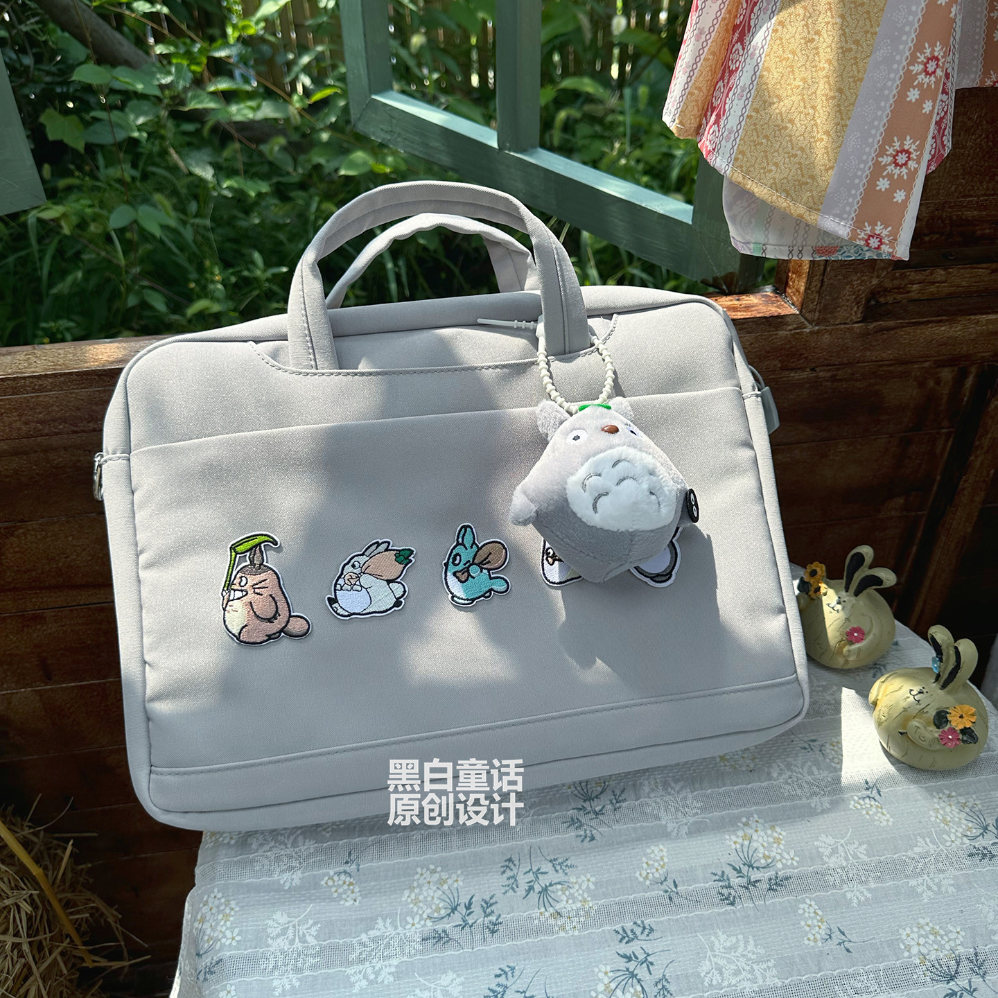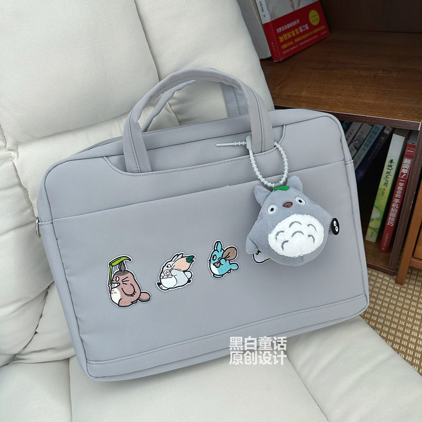 高颜值卡通龙猫可爱贴布手提笔记本电脑包16寸大容量气囊设计游戏本收纳包14寸适用华为苹果联想拯救者y9000