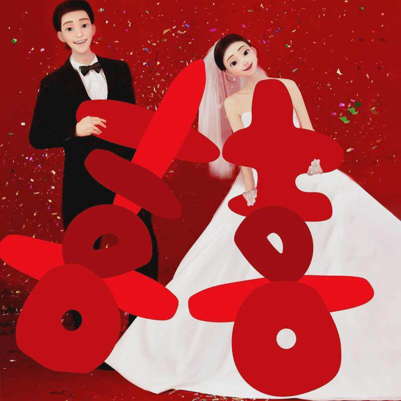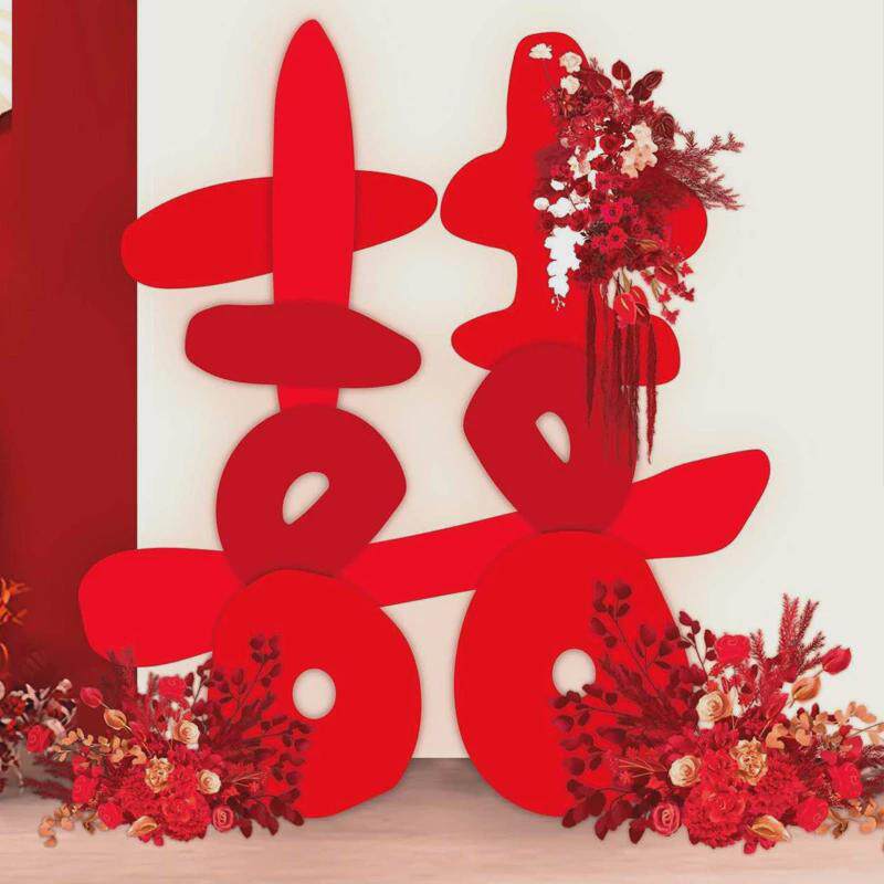 多巴胺彩色超大喜字kt板结婚晨婚礼装饰拍照道具婚房布置拍迎宾区