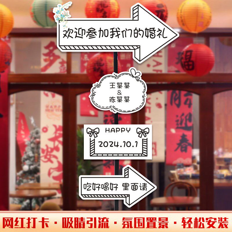 婚礼路引指示牌装饰场景氛围布置打卡路牌婚宴婚房喜庆kt板拍照酒