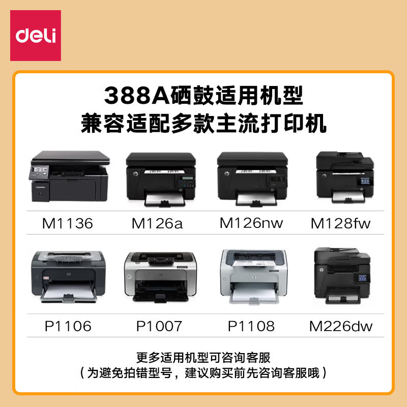 得力CC388a硒鼓适用惠普hpm1136 m126a/nw打印机墨盒p1106 p1108 p1007 p1008 m128粉盒m1213nf易加粉88a碳粉