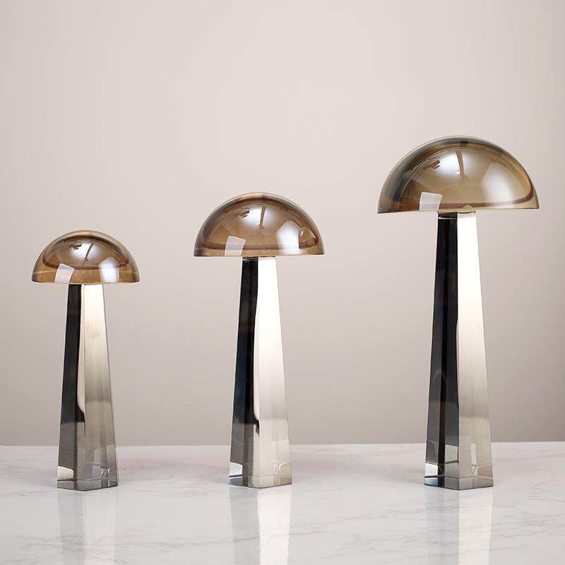 轻奢创意几何设计感现代人造水晶蘑菇工艺品家居样板房装饰品摆件