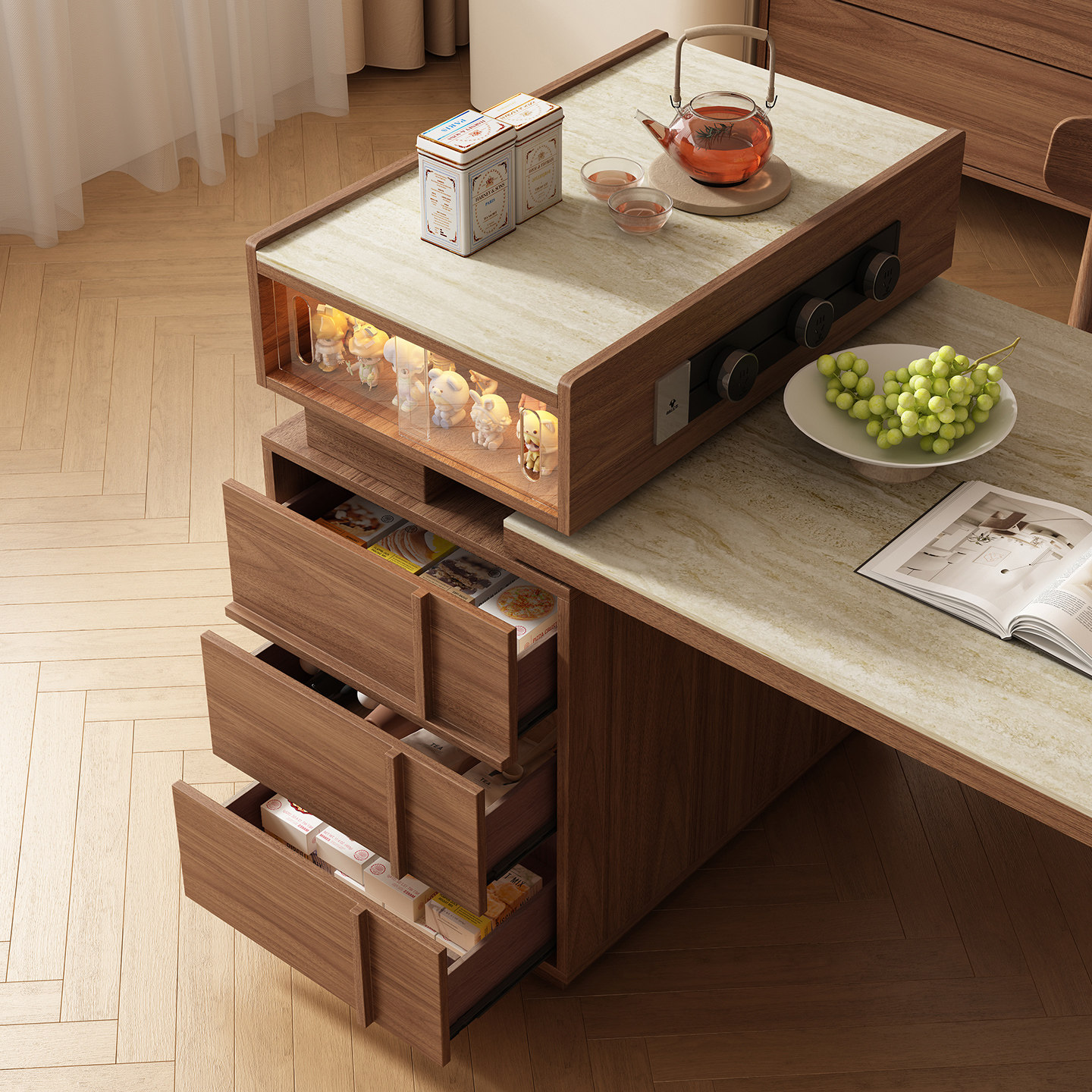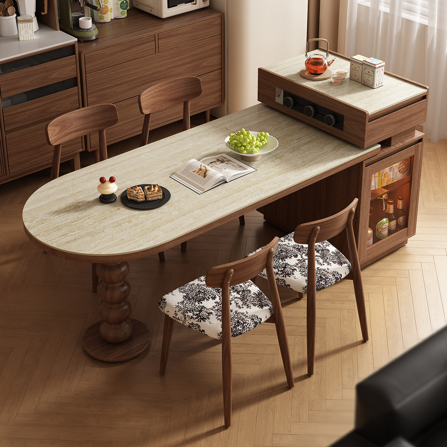 中古风复古岛台餐桌一体家用可伸缩小户型岩板极窄餐边柜客厅吧台