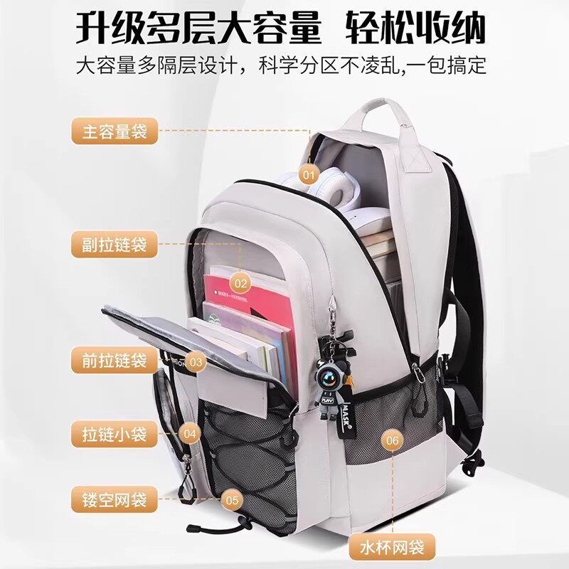 CHAOFANJI 设计感小众潮牌休闲书包女大学生双肩包男生高中生背包