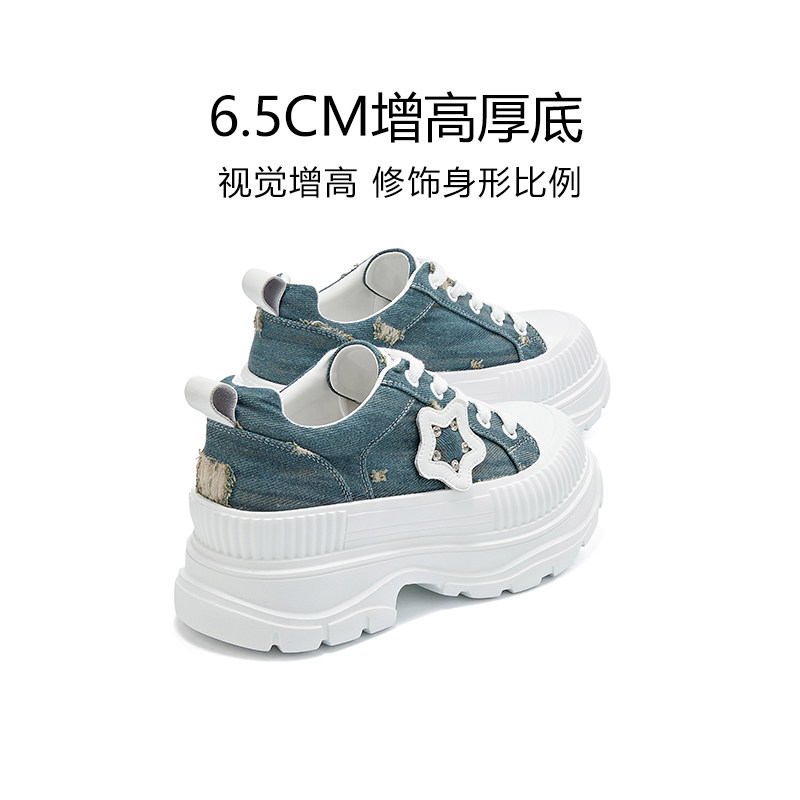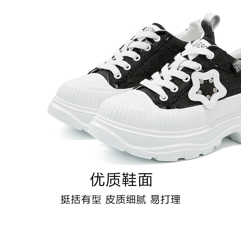 【明星同款】Wander around春秋款黑色厚底增高休闲板鞋男女同款