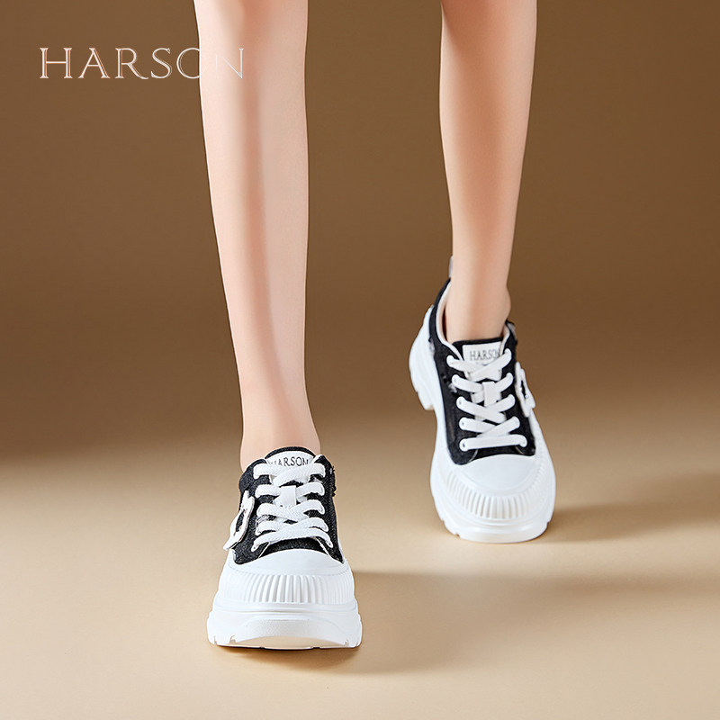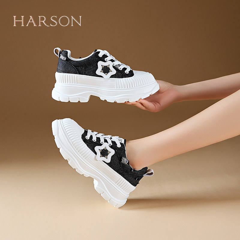 哈森贝壳鞋女2025新款夏季透气厚底休闲板鞋时尚百搭女鞋子星星鞋