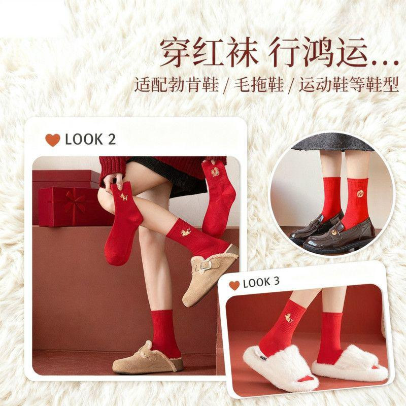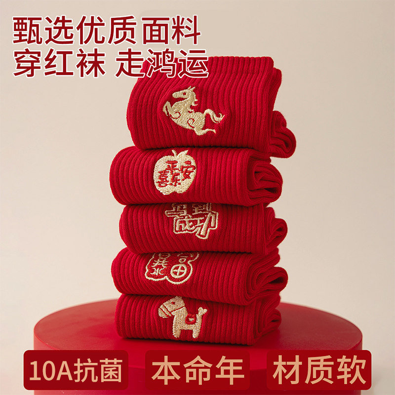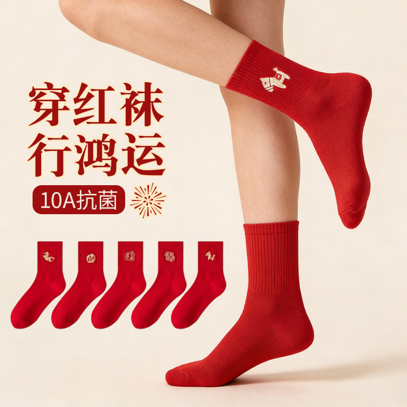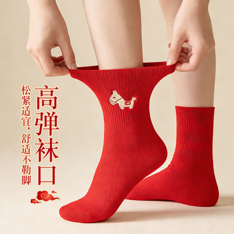 本命年红色袜子男女情侣款中筒袜秋冬季2026马年结婚情侣一对长袜