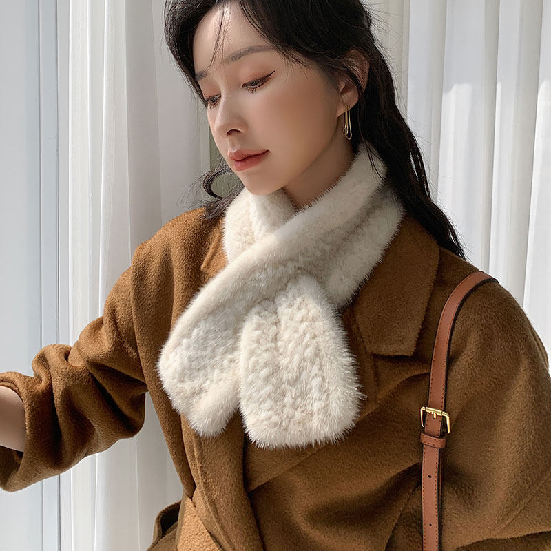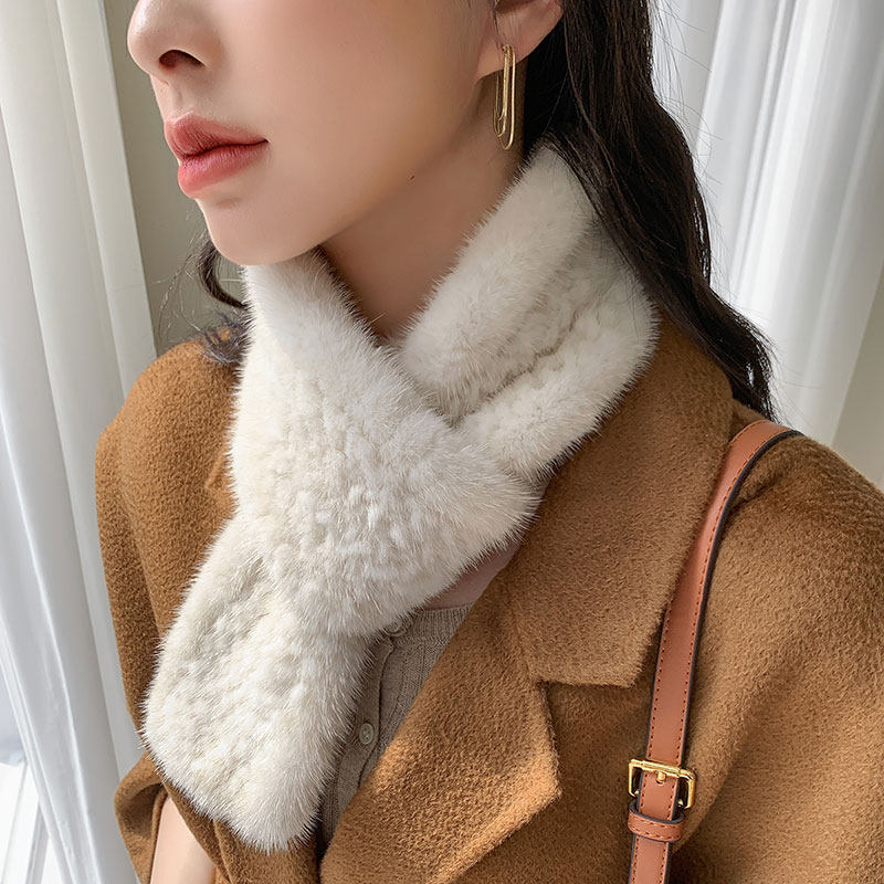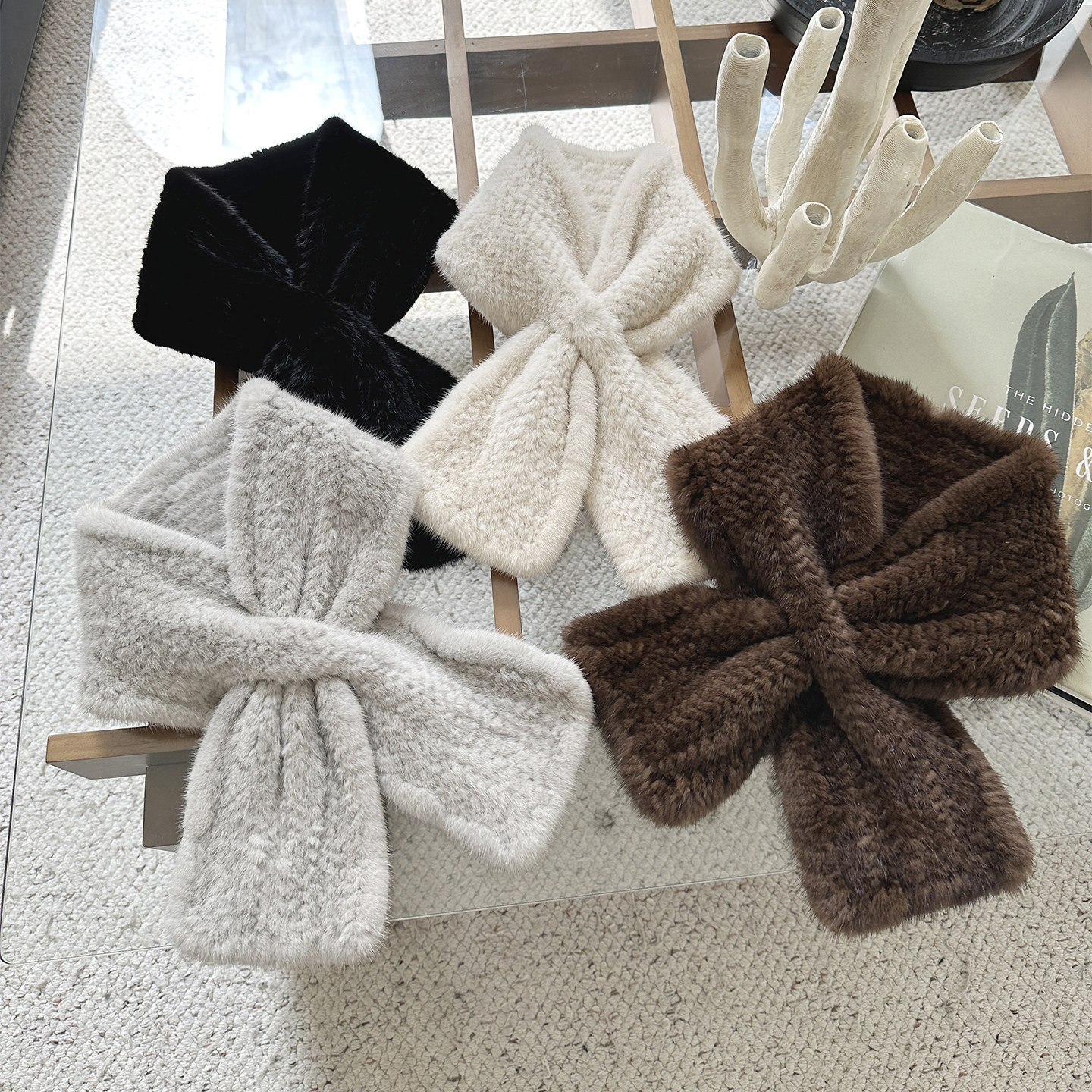 新款精致型双面真水貂毛编织皮草围巾女秋冬基础时尚百搭毛领围脖