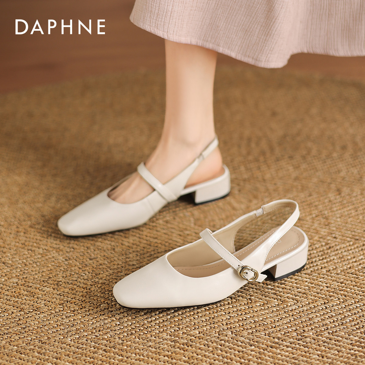 达芙妮包头凉鞋女2026夏季新款粗跟绝美玛丽珍鞋法式气质后空单鞋