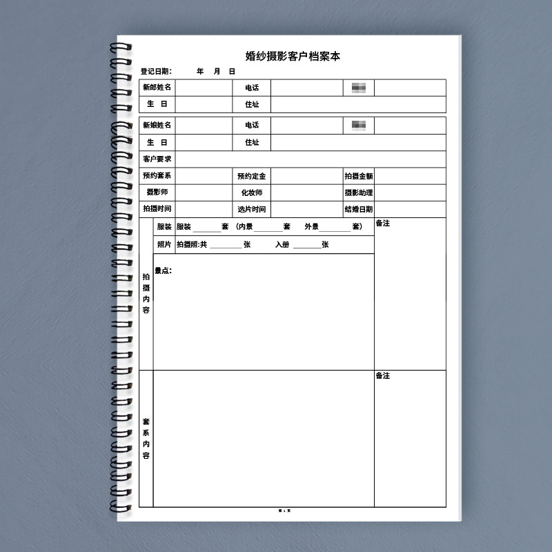 婚纱摄影客户档案本婚纱摄影工作室客户预约婚纱影楼顾客购买预约登记本影楼拍婚纱客户信息资料登记拍摄档期