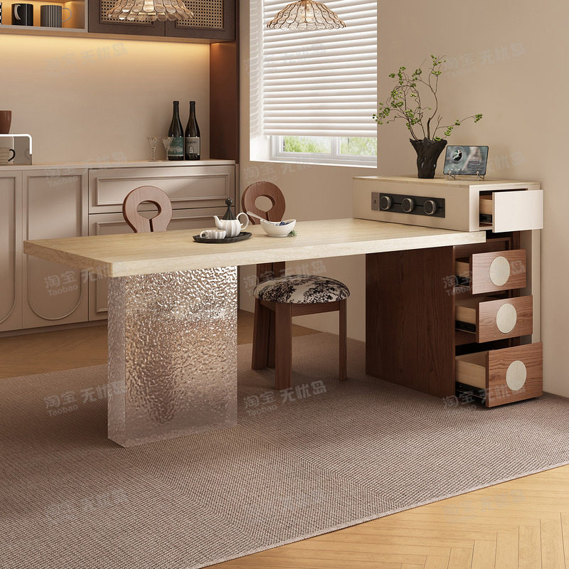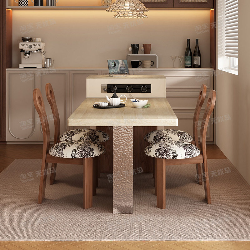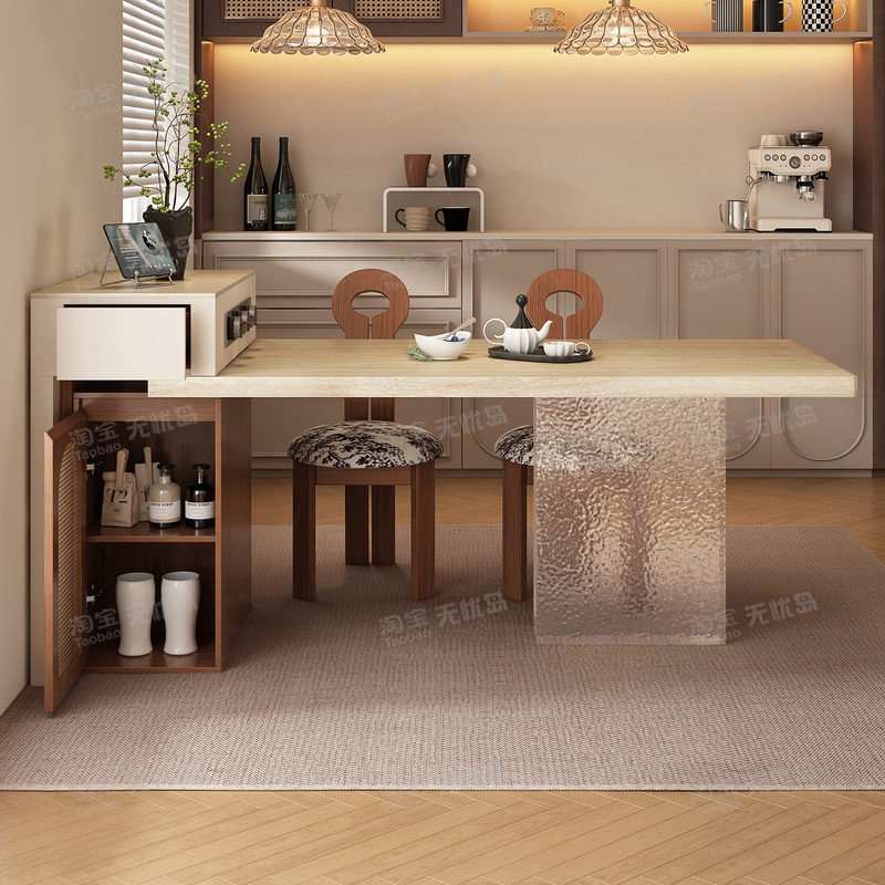 2026新款中古风实木岩板岛台餐桌一体厨房岛台一体式桌子简约吧台