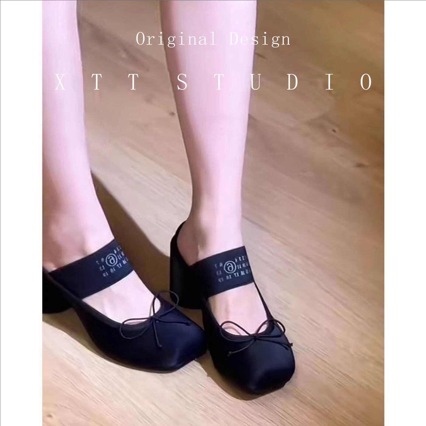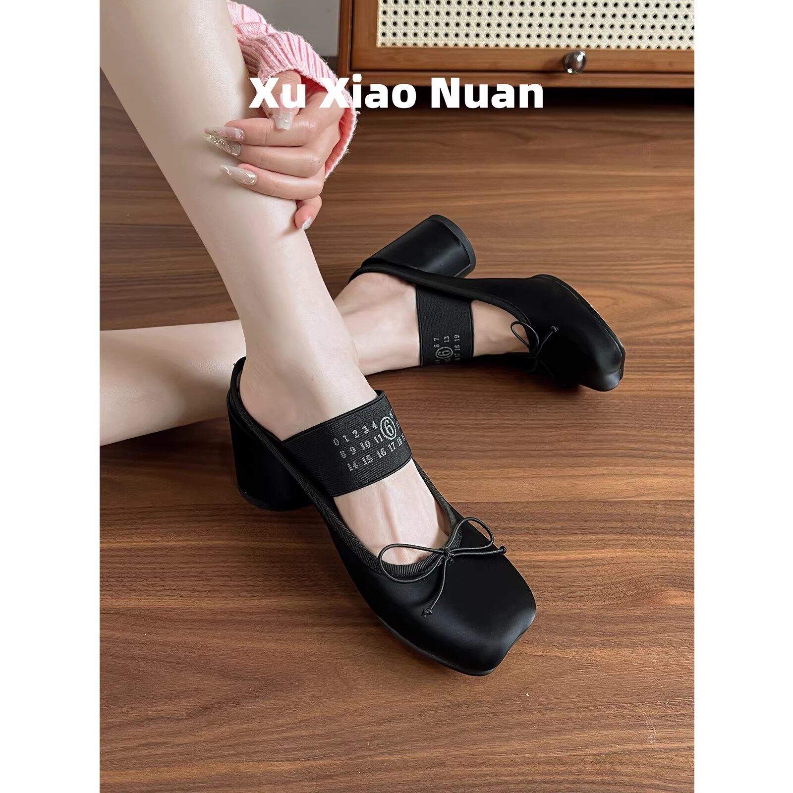 HH5女鞋辛德瑞拉2026春季新款苹果头复古粗跟包头拖玛丽珍鞋拖鞋