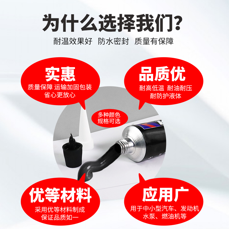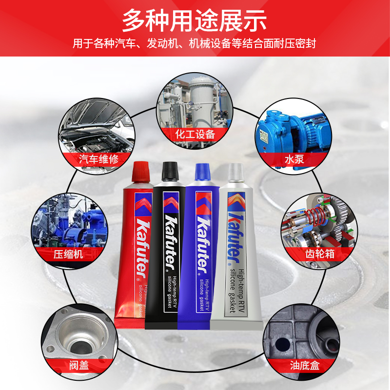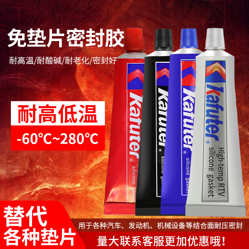 卡夫特密封胶防热胶 耐高温防水汽车用维修免垫片银胶硅酮黑胶发动机缸体耐油588免垫胶密封维修胶蓝胶红胶