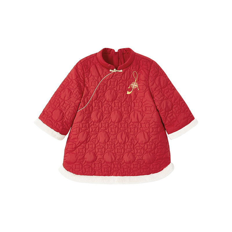 [保暖加厚]女童背心裙中国风裙子宝宝红色连衣裙小儿童冬季拜年服