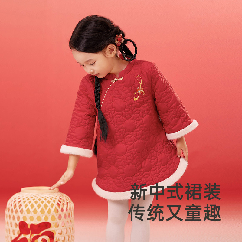 巴拉巴拉女童连衣裙宝宝拜年裙子冬装新款童装儿童红色洋气公主裙