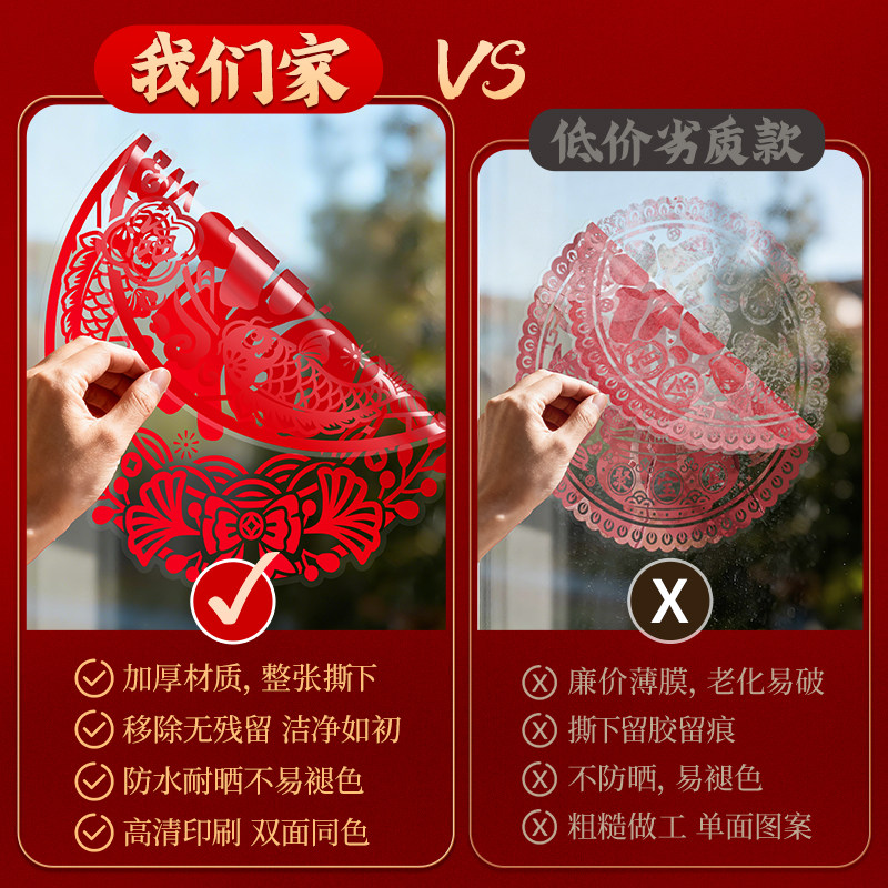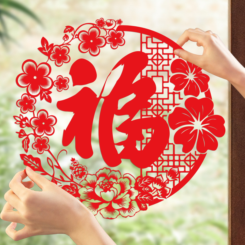 新年窗花福字门贴马年2026新款过年贴纸年画装饰布置春节玻璃贴画