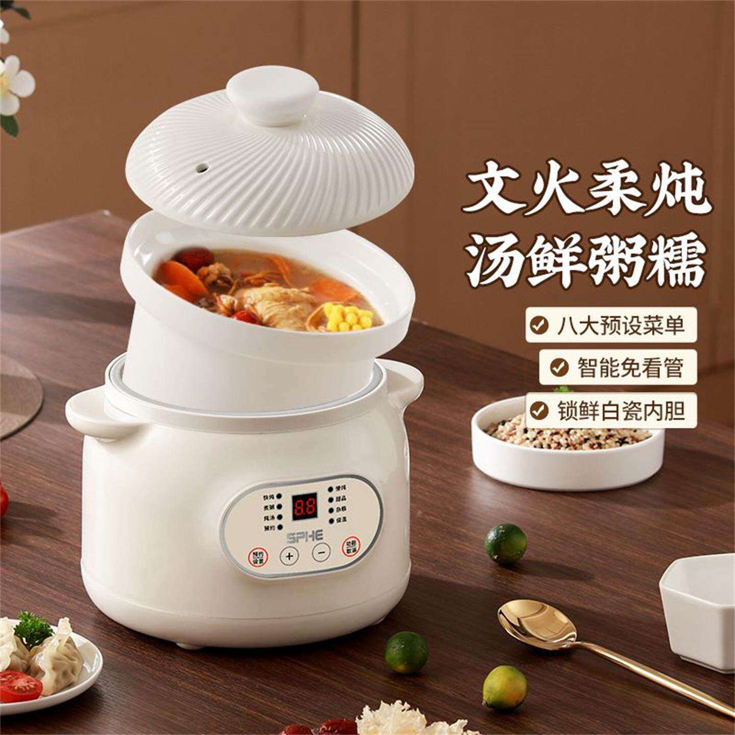 SPHE苏泊多功能电炖锅陶瓷煲汤家用炖汤电炖盅婴儿辅食锅煮粥砂锅
