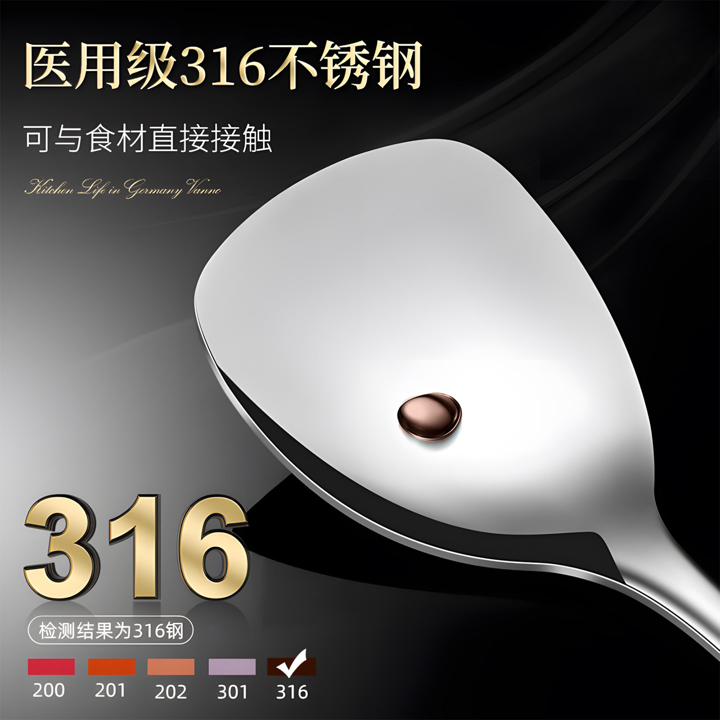 国风锅铲家用316不锈钢加厚炒菜铲子漏捞汤勺煎铲炒勺厨具套装