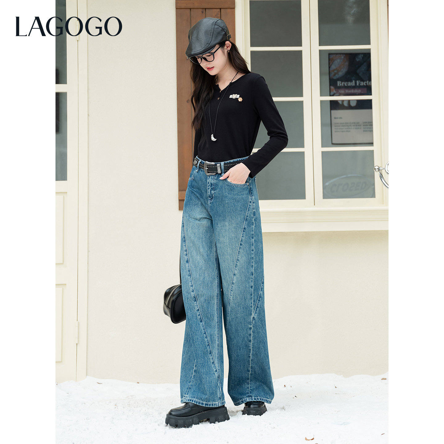 LAGOGO可爱小熊长袖T恤女拉谷谷2026年春季新款黑色弹力舒适上衣