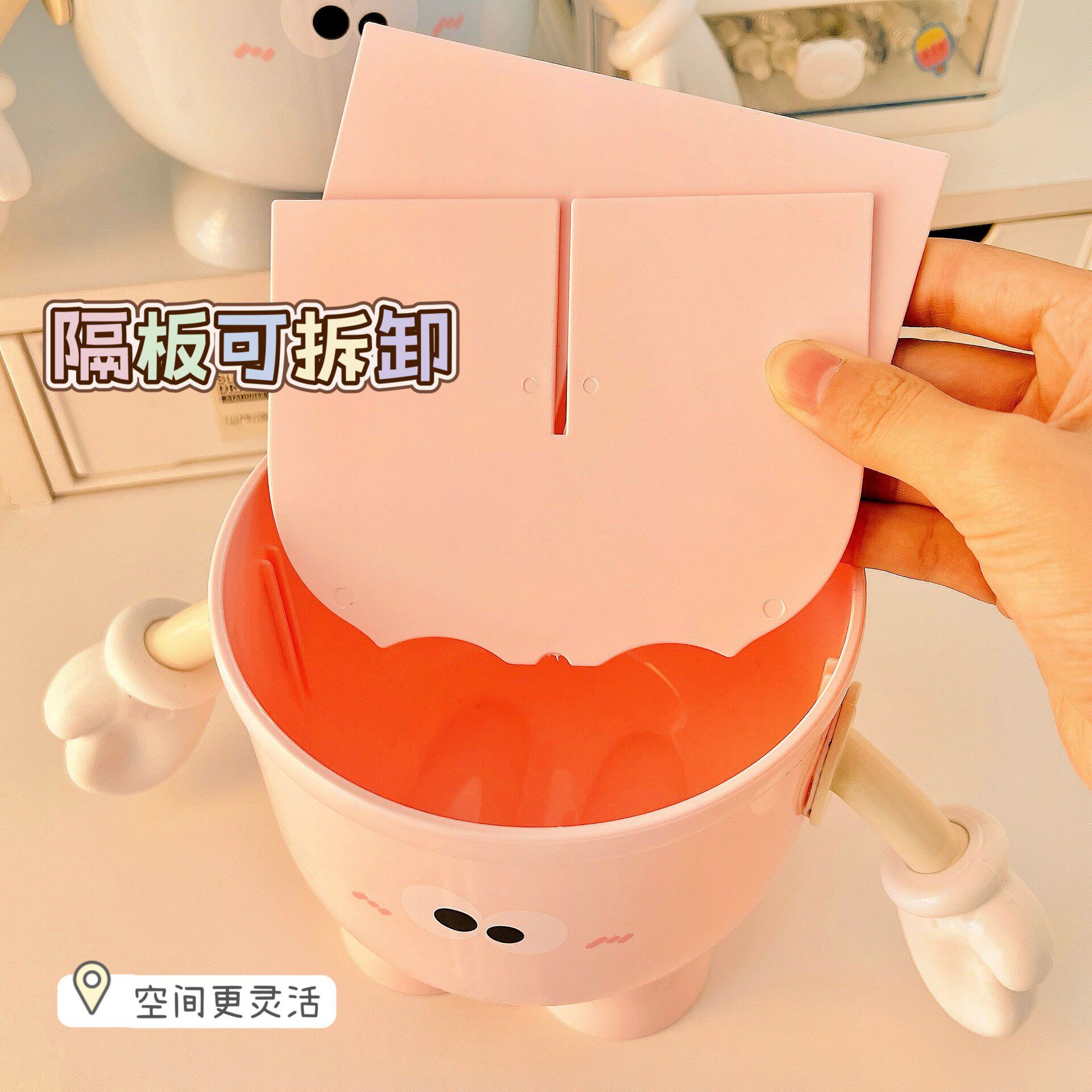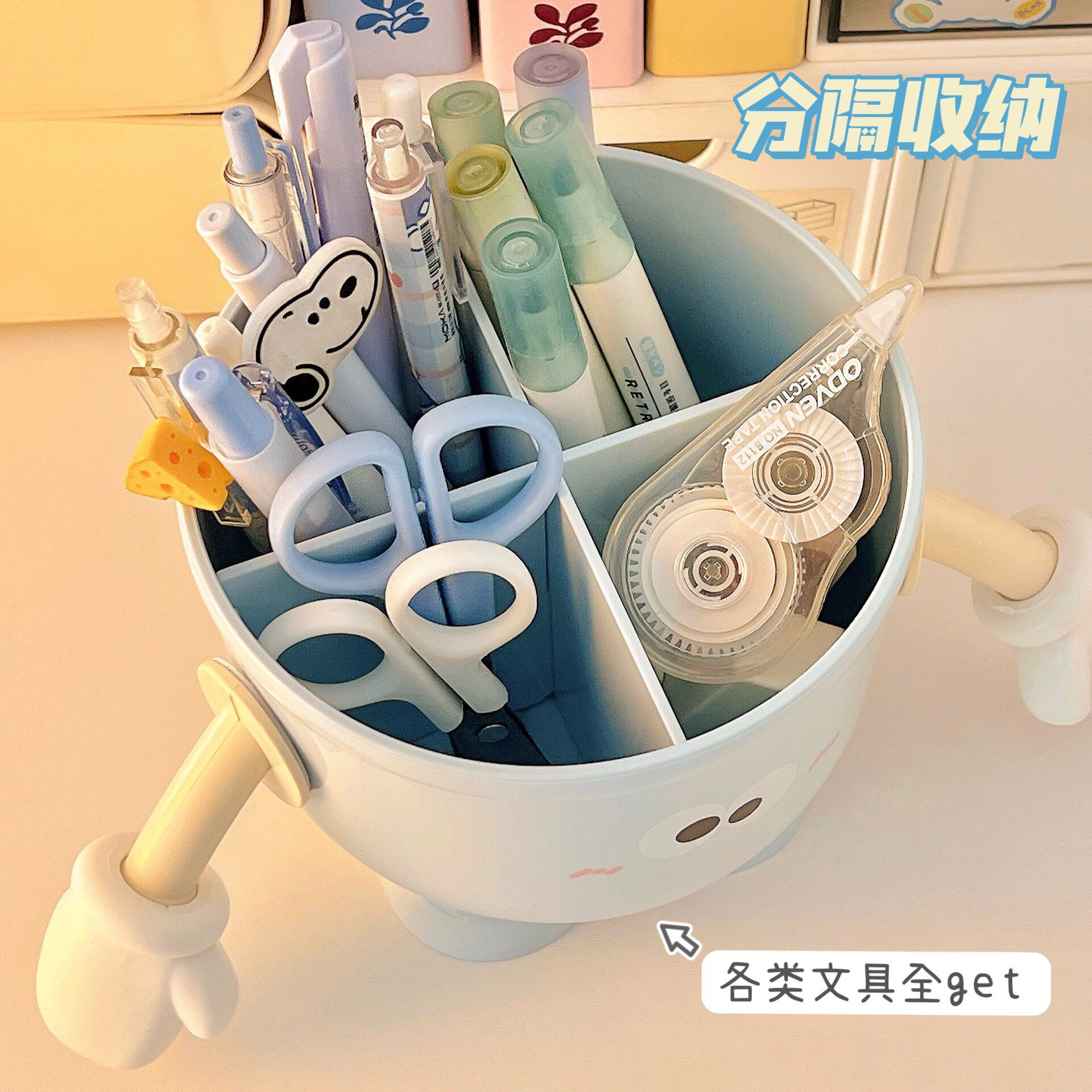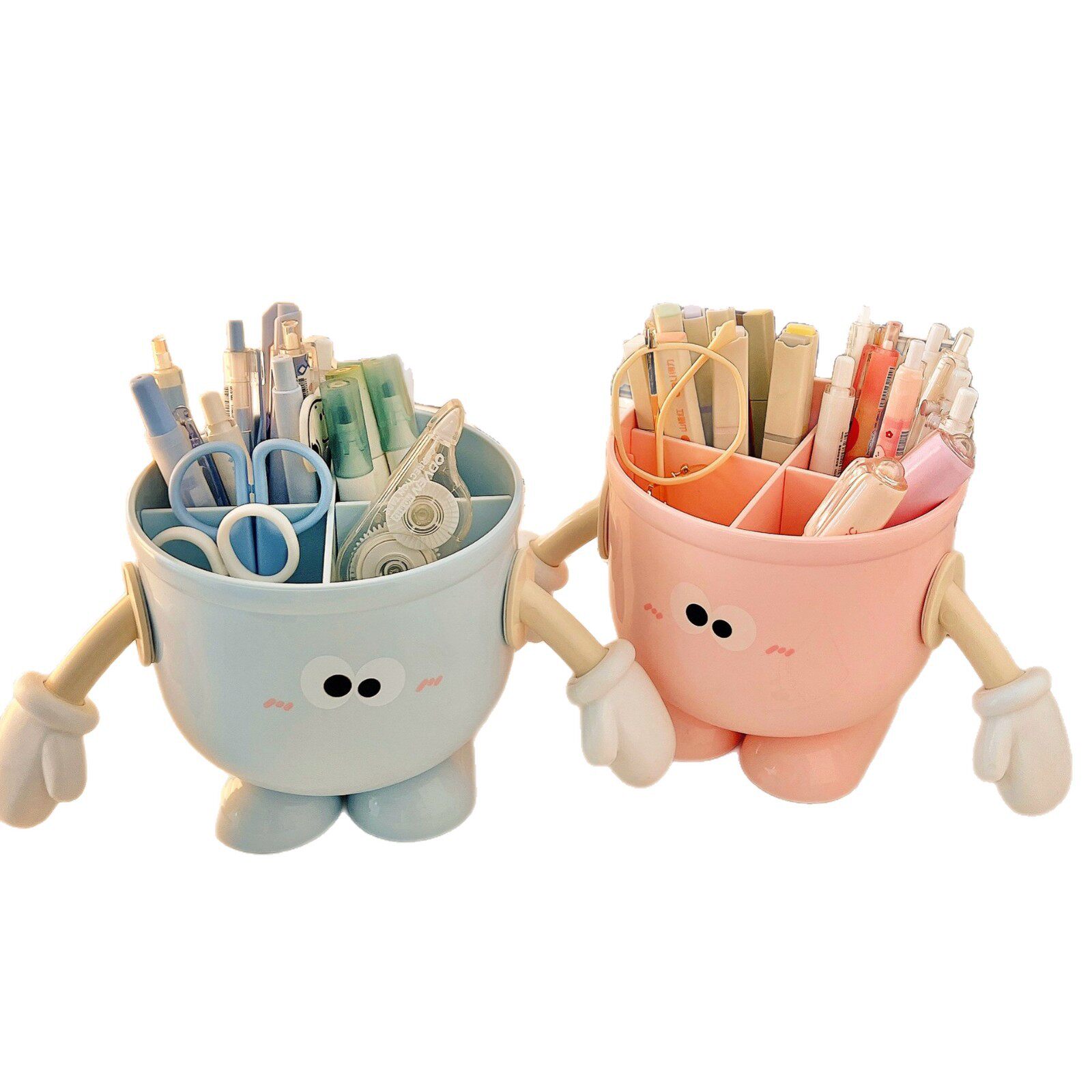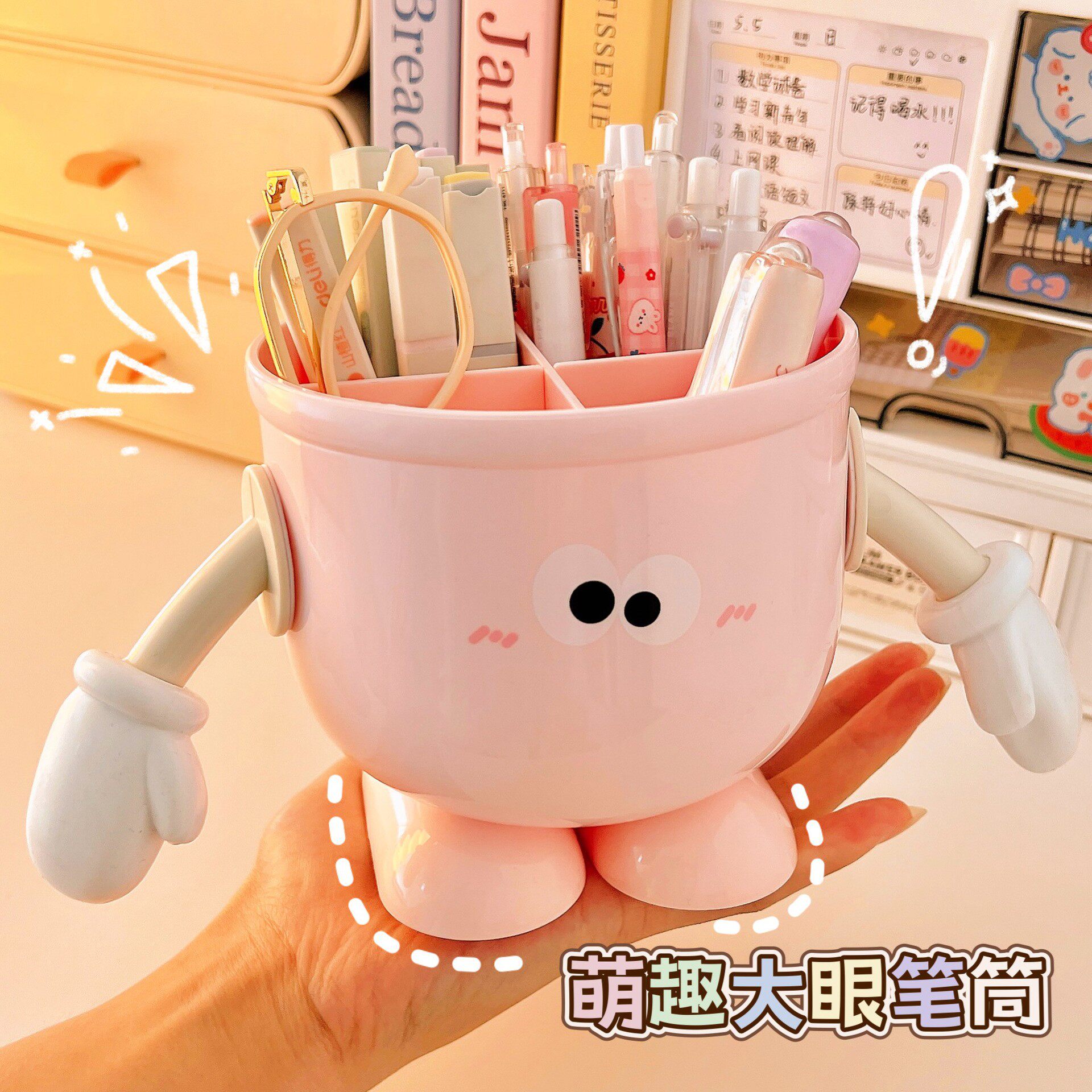 可爱大眼笔筒学生桌面收纳盒文具办公室工位儿童女大容量小脚