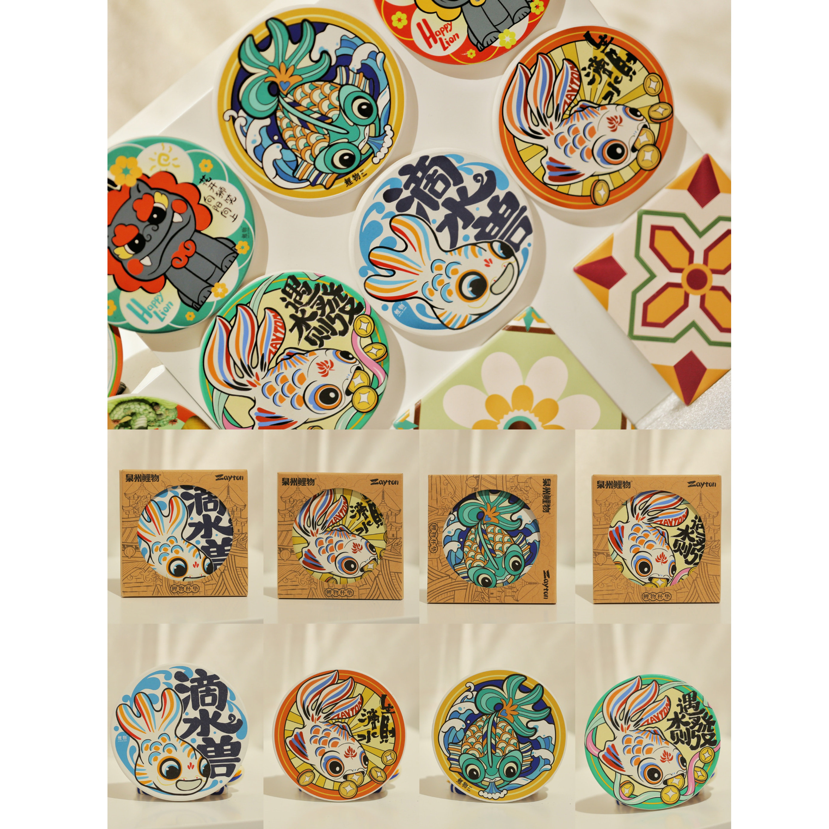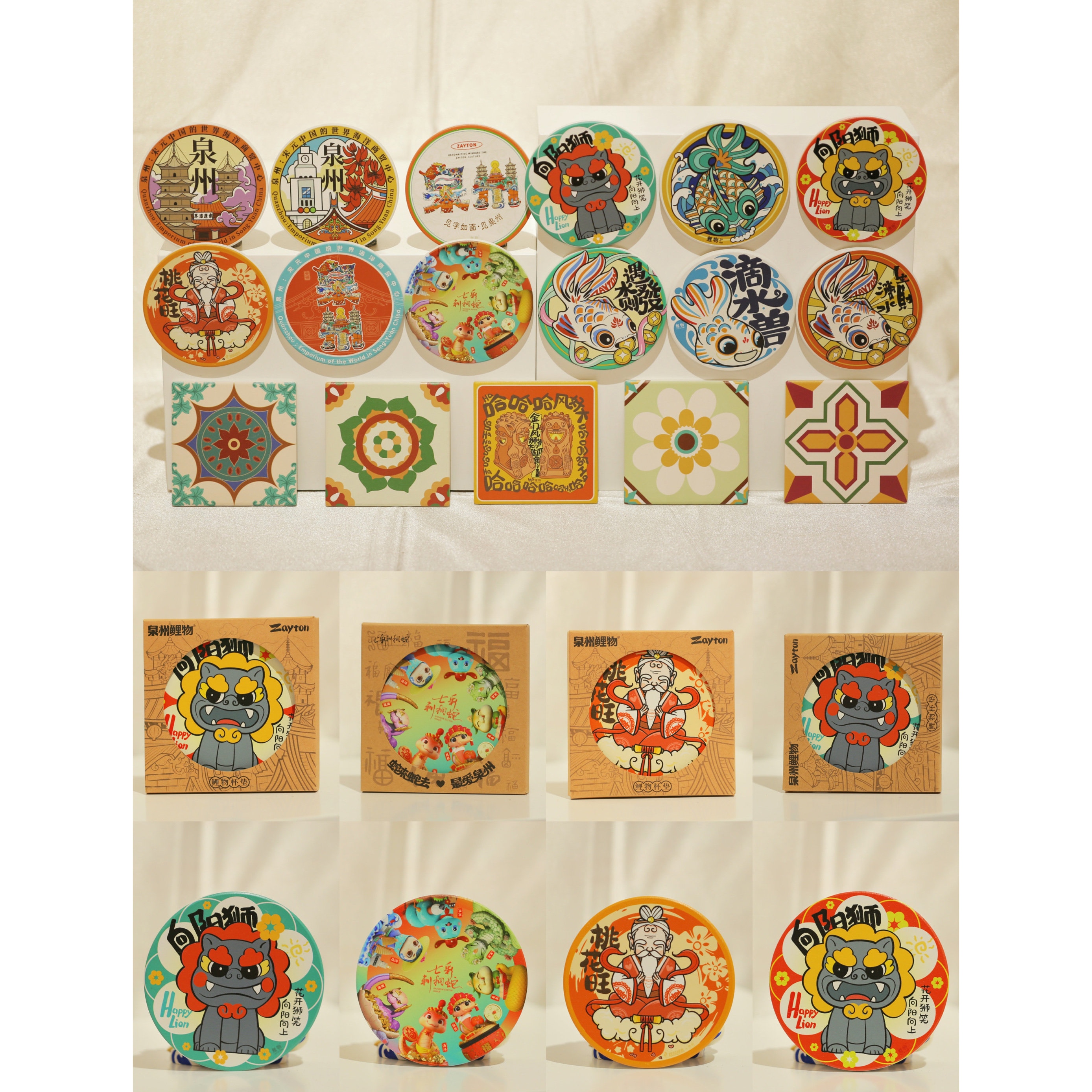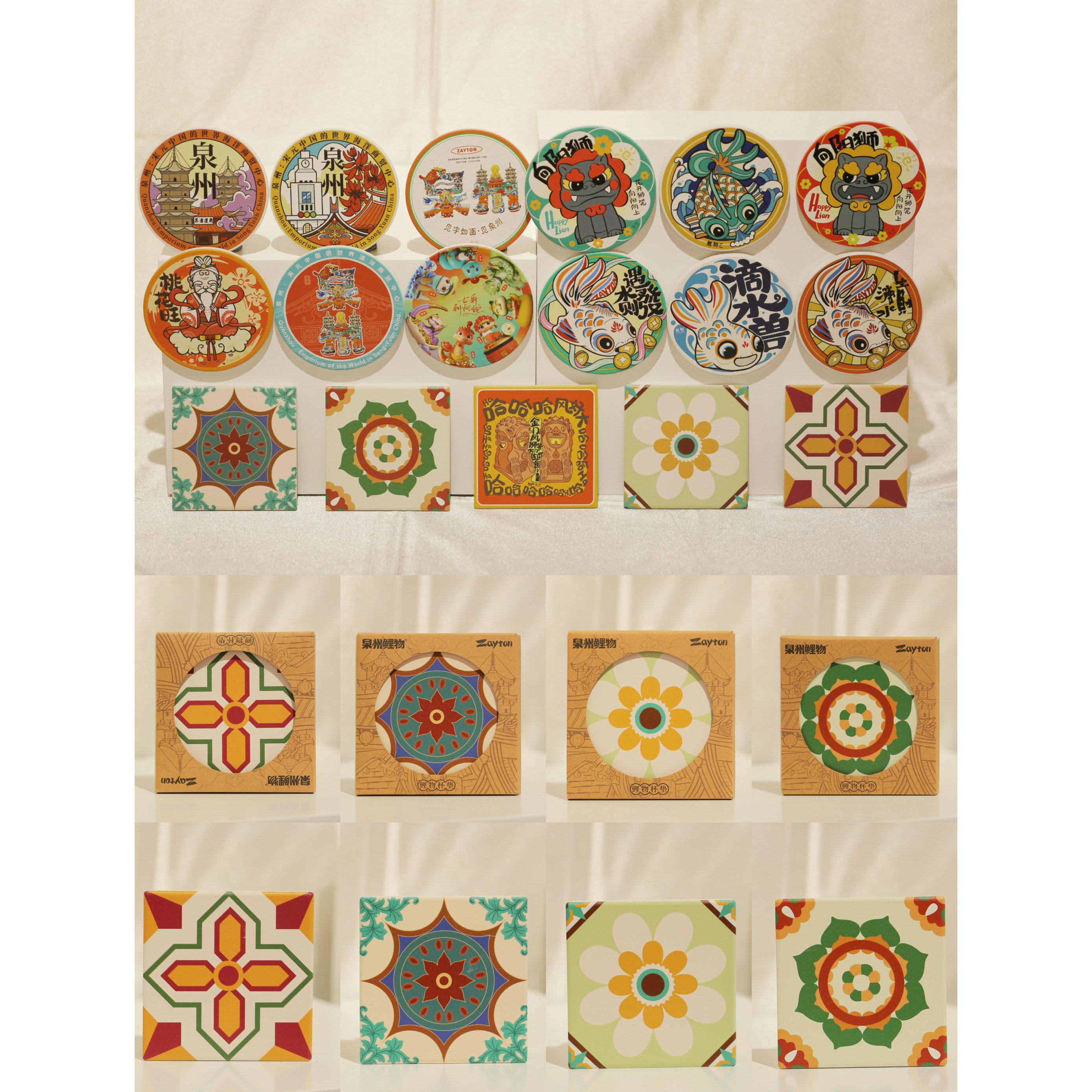 鲤物文创|闽南特色花砖杯垫滴水兽石敢当泉州