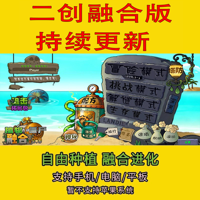植物大战僵尸融合版V3.3.1神秘模式塔防送修改器安卓手机电脑游戏