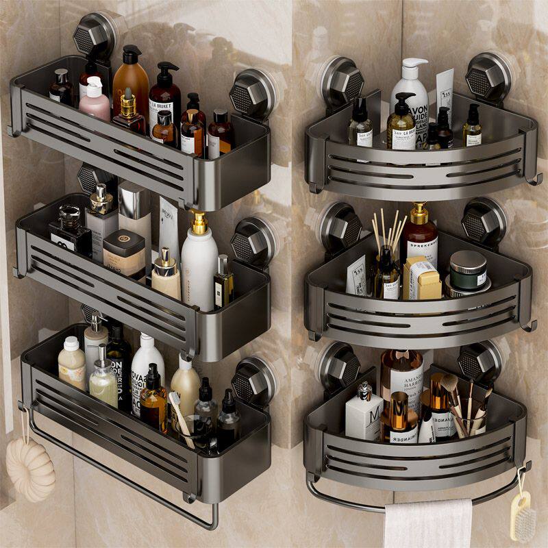 枪灰卫生间置物架浴室三角架子免打孔壁挂厕所洗手间洗漱台收纳架