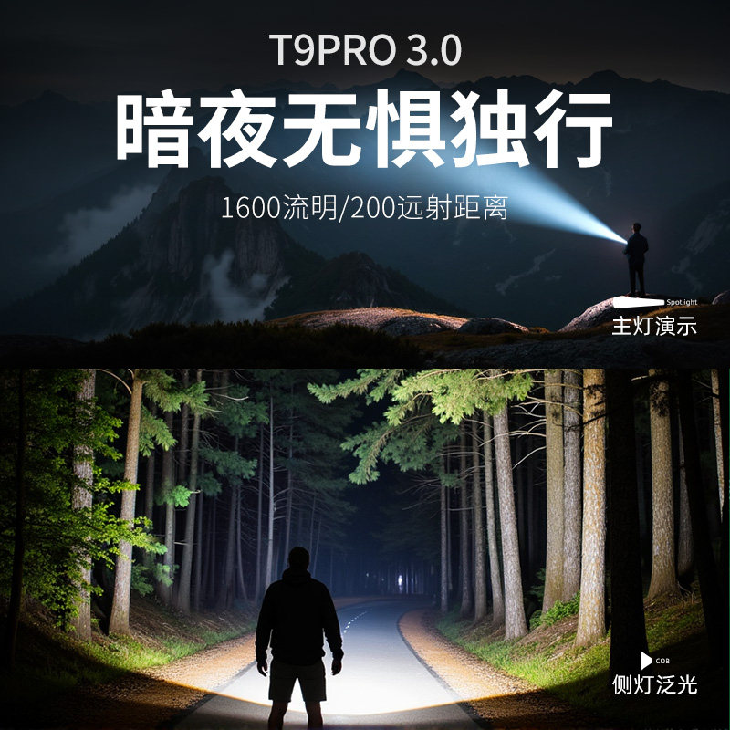 【买1发3】沃尔森t9pro强光手电筒充电户外照明灯维修小型工作灯