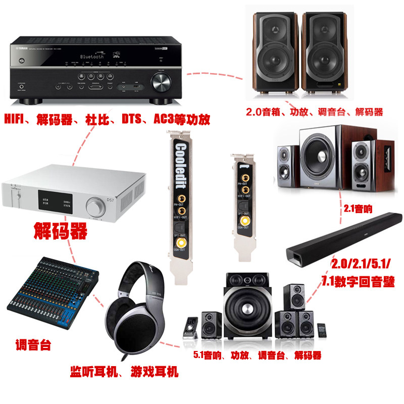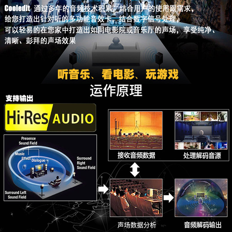 光纤同轴数字DTS杜比台式电脑内置独立影音乐游戏解码器PCIE 声卡