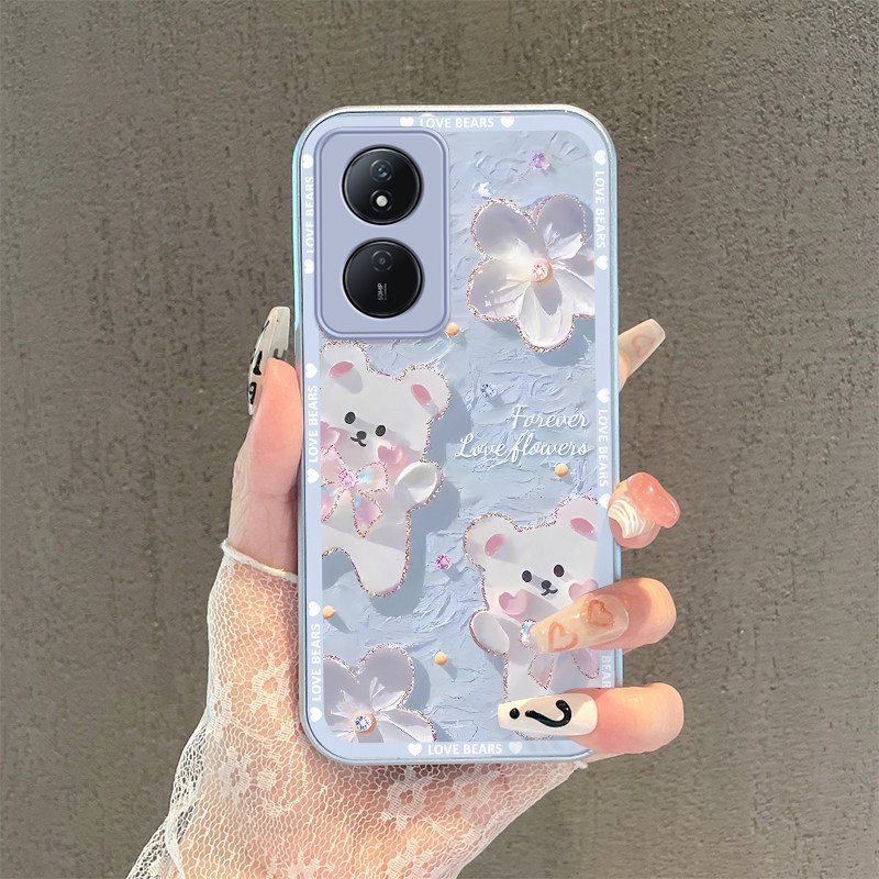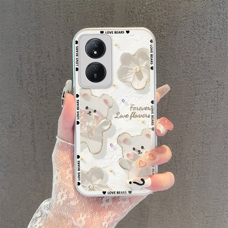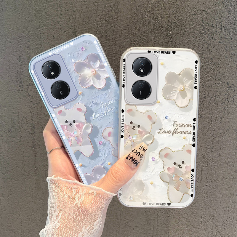 适用华为荣耀play8t手机壳蝴蝶结小熊CLK-AN00防摔卡通女网红金属漆玻璃全包新款潮