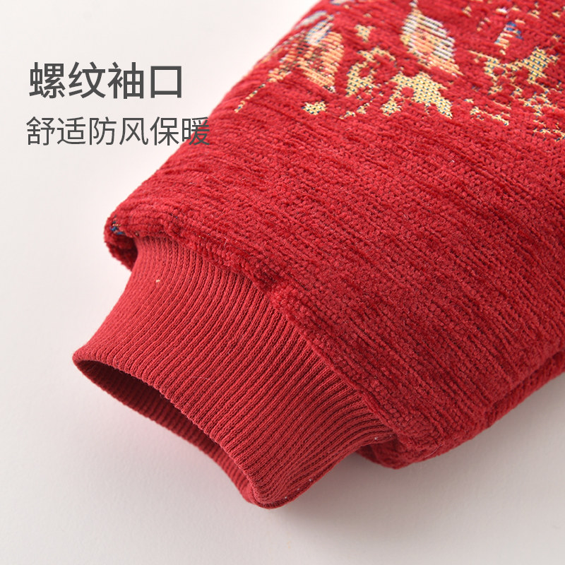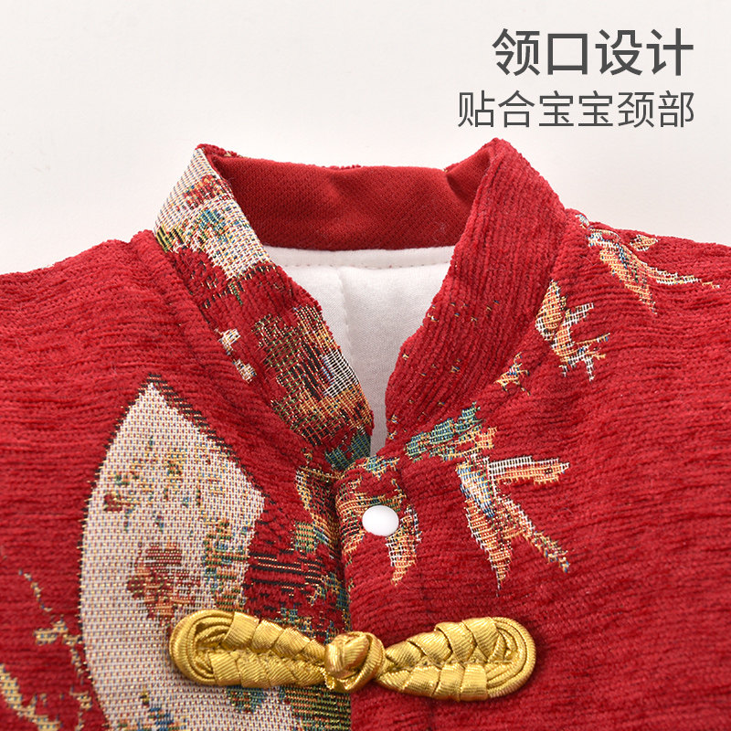 婧麒新生婴儿衣服冬季夹棉加厚连体衣满月宝宝喜庆冬装外出拜年服