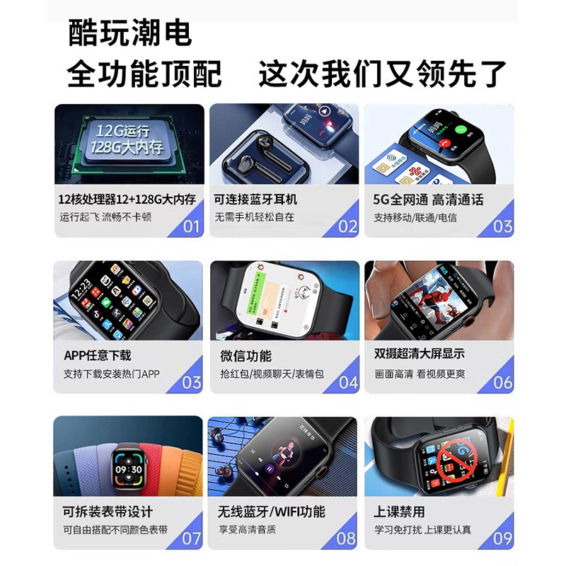 5G全网通大屏智能电话手表可插卡WiFi下载多功能儿童小学初高中生专用视频通话GPS定位防水男生女生青少年