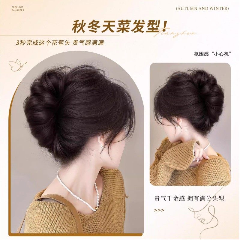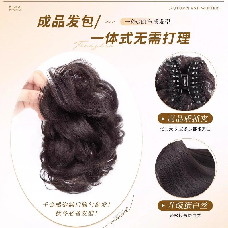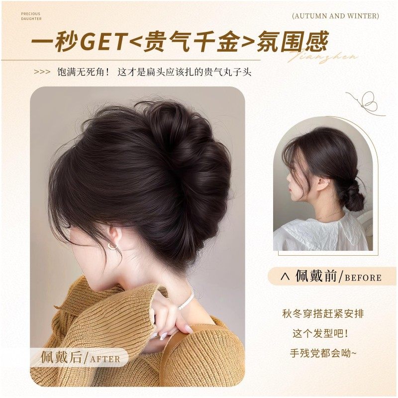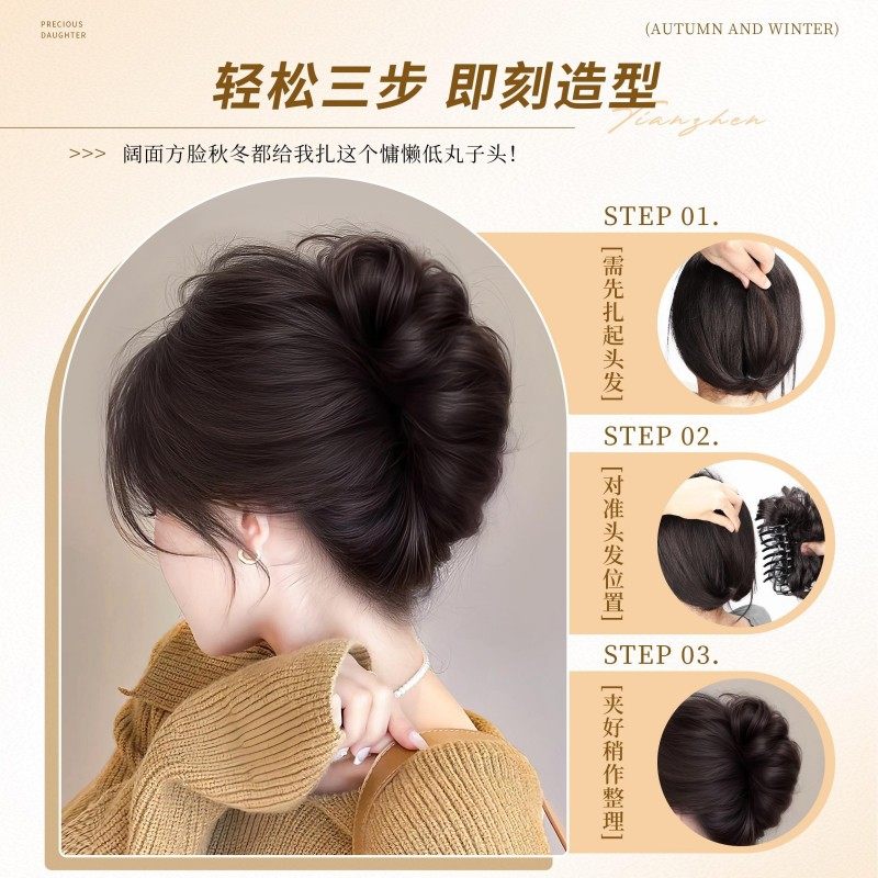 低扎丸子头假发鸡毛头抓夹盘发发包慵懒感造型头饰自然蓬松后脑勺