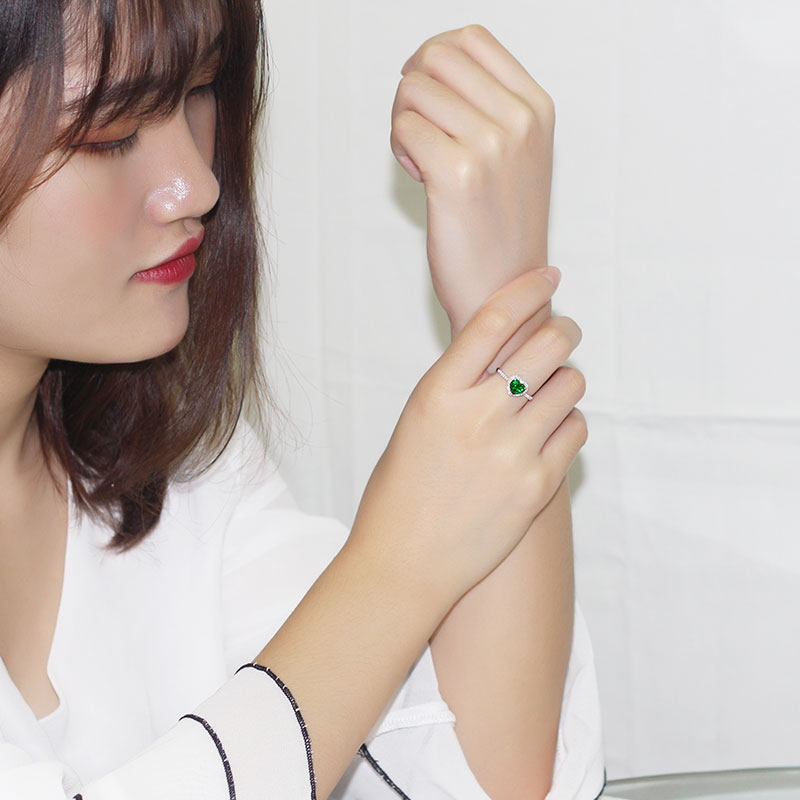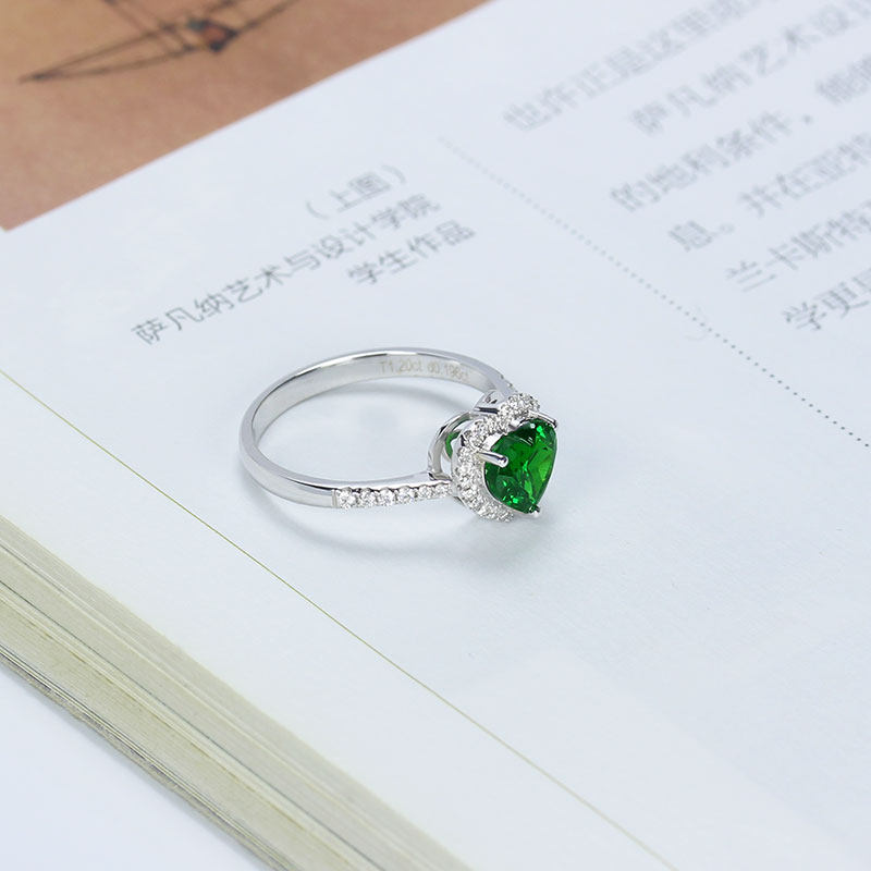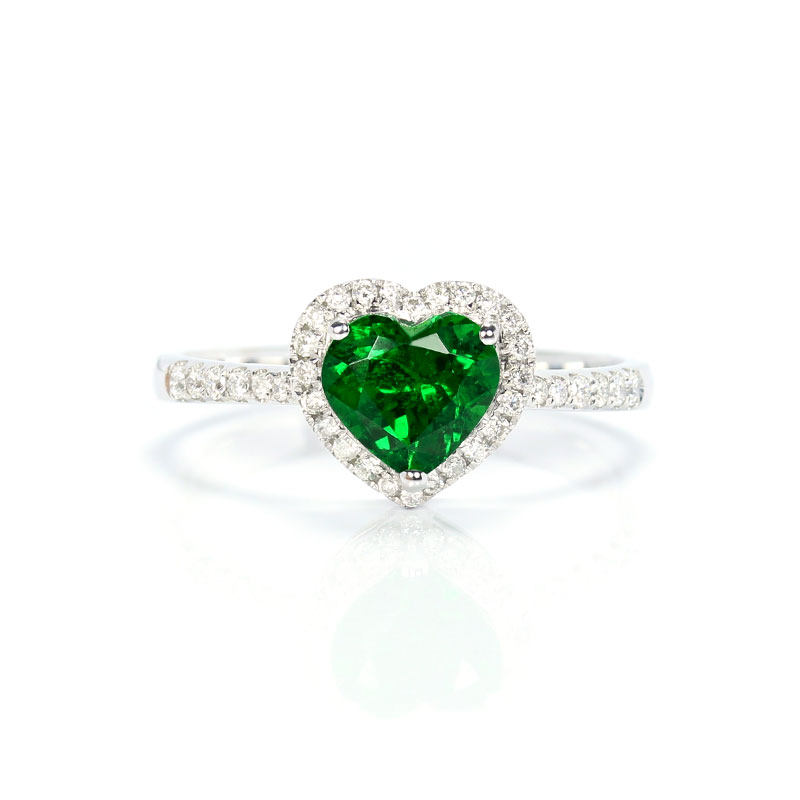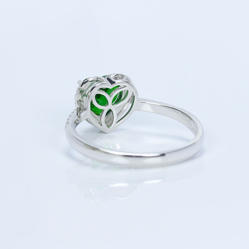 18K白金天然心形沙弗莱戒指 石榴石绿色宝石镶钻石女款指圈可定制