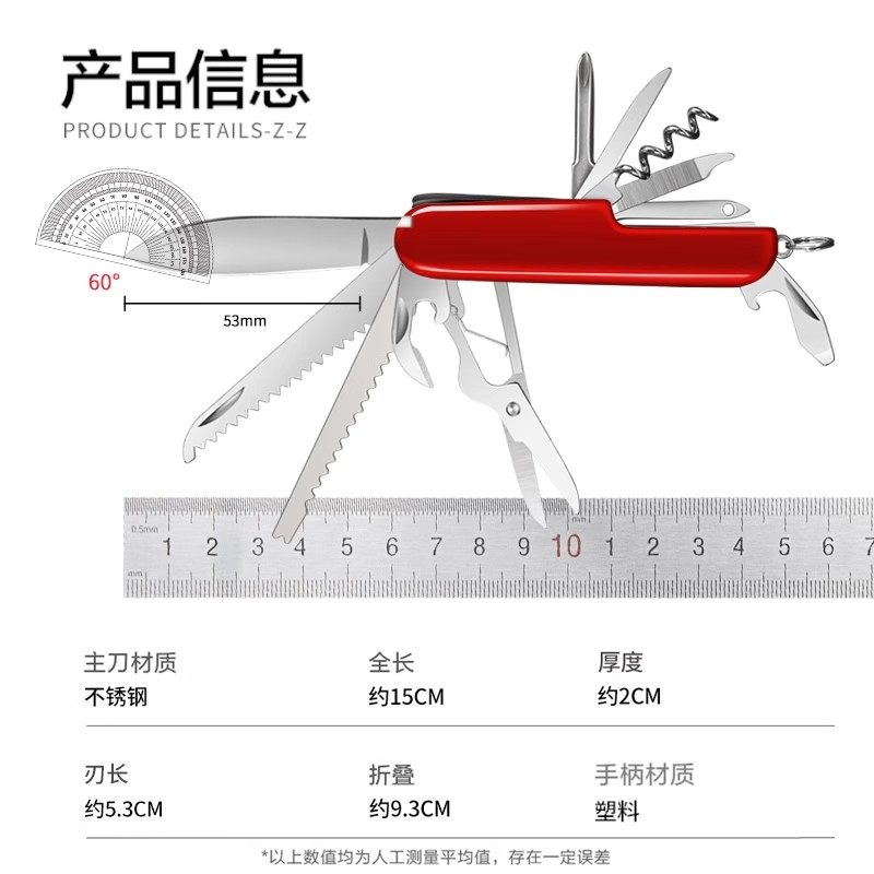 折叠刀多功能瑞士军刀户外野营折叠工具求生防身户外不锈钢水果刀