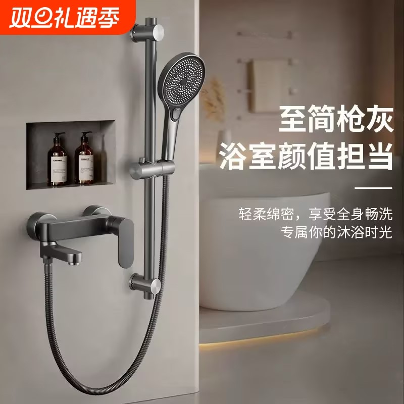 全铜花洒套装家用淋浴简易混水阀水龙头一体浴室冷热沐浴洗澡淋雨