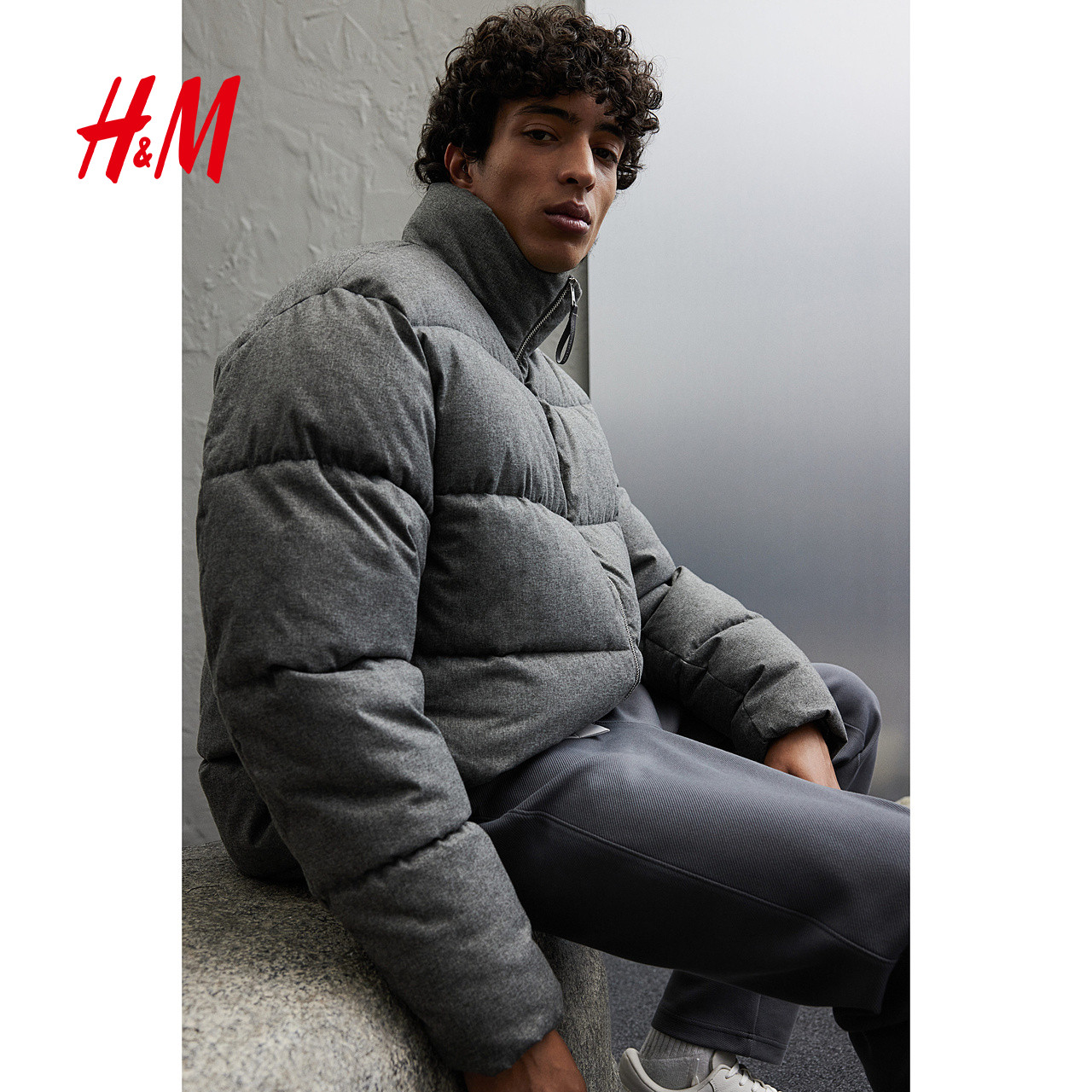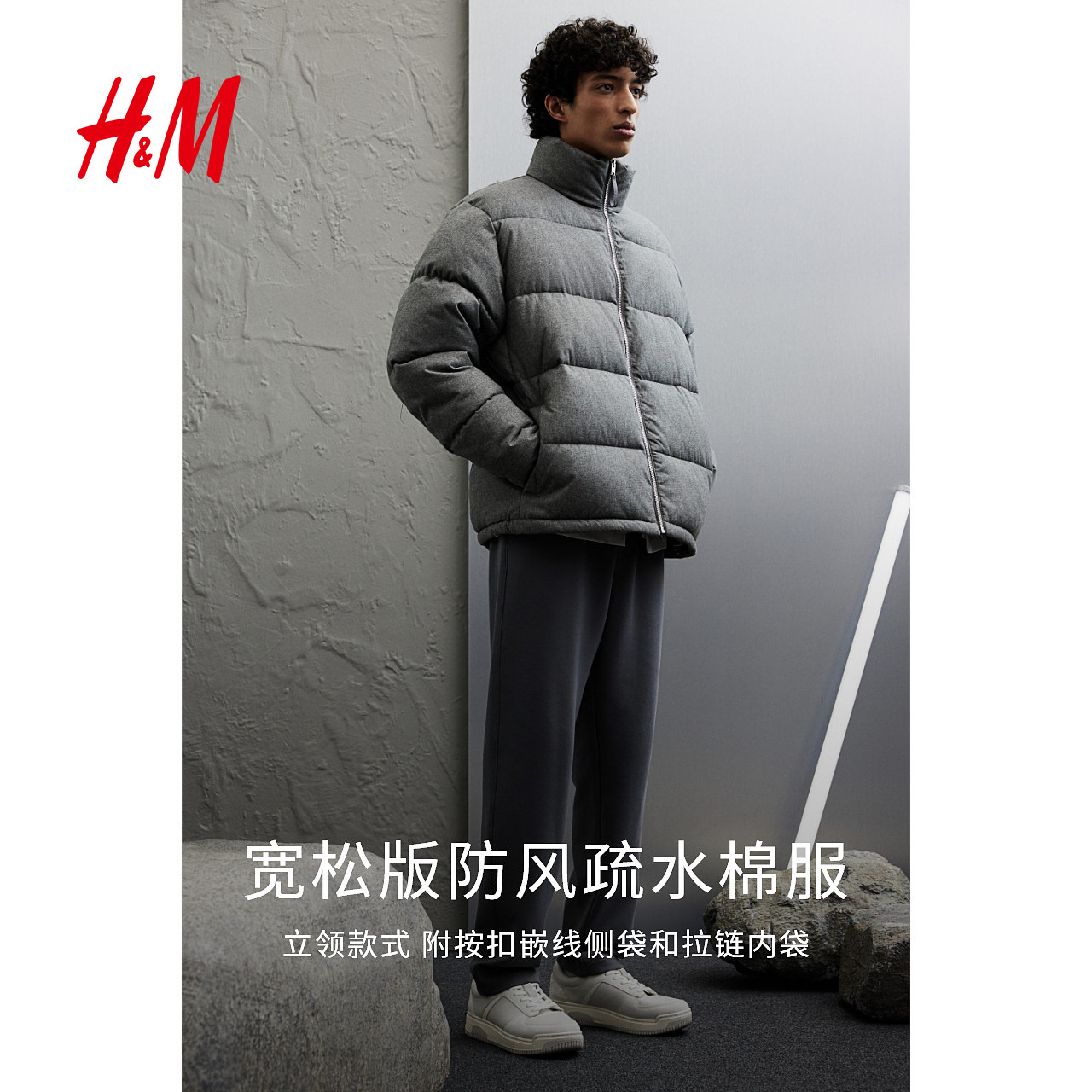 HM男装棉服冬季运动户外防风绗缝疏水休闲保暖宽松面包服1245645