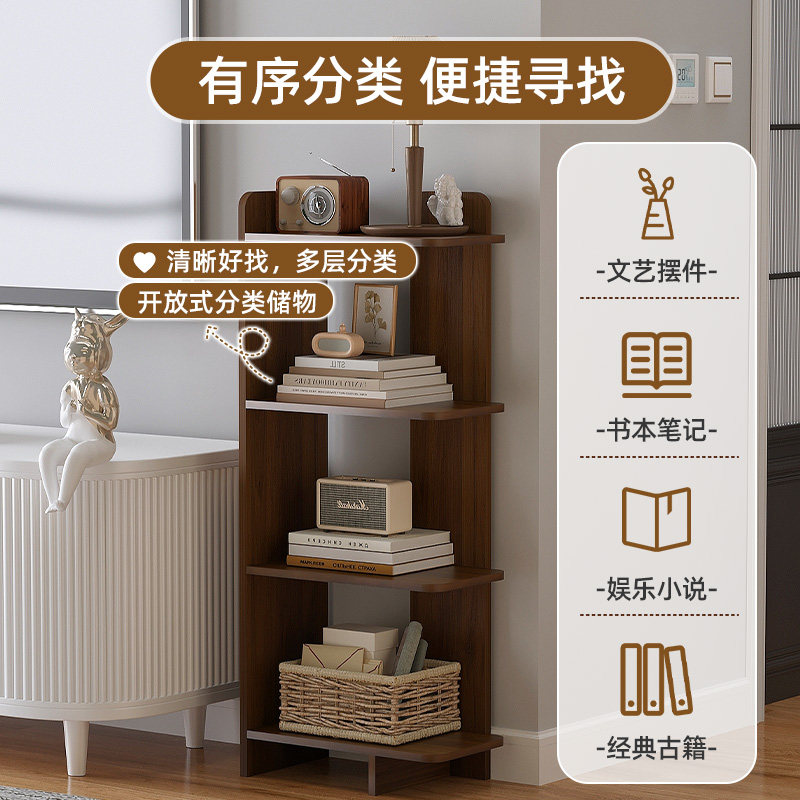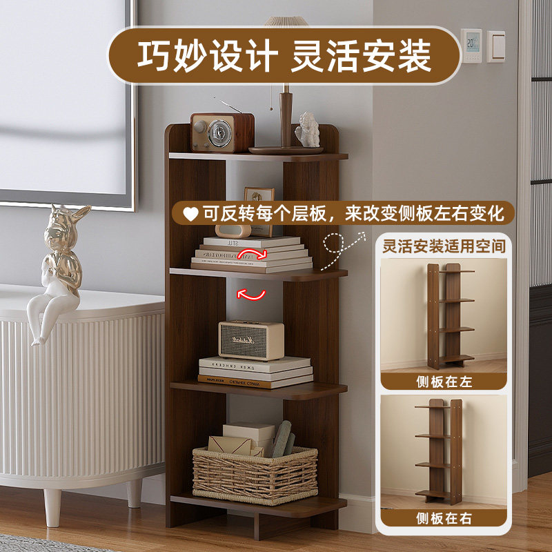 转角柜卧室家用简易床头书架落地置物架一体靠墙书柜电视旁置物架